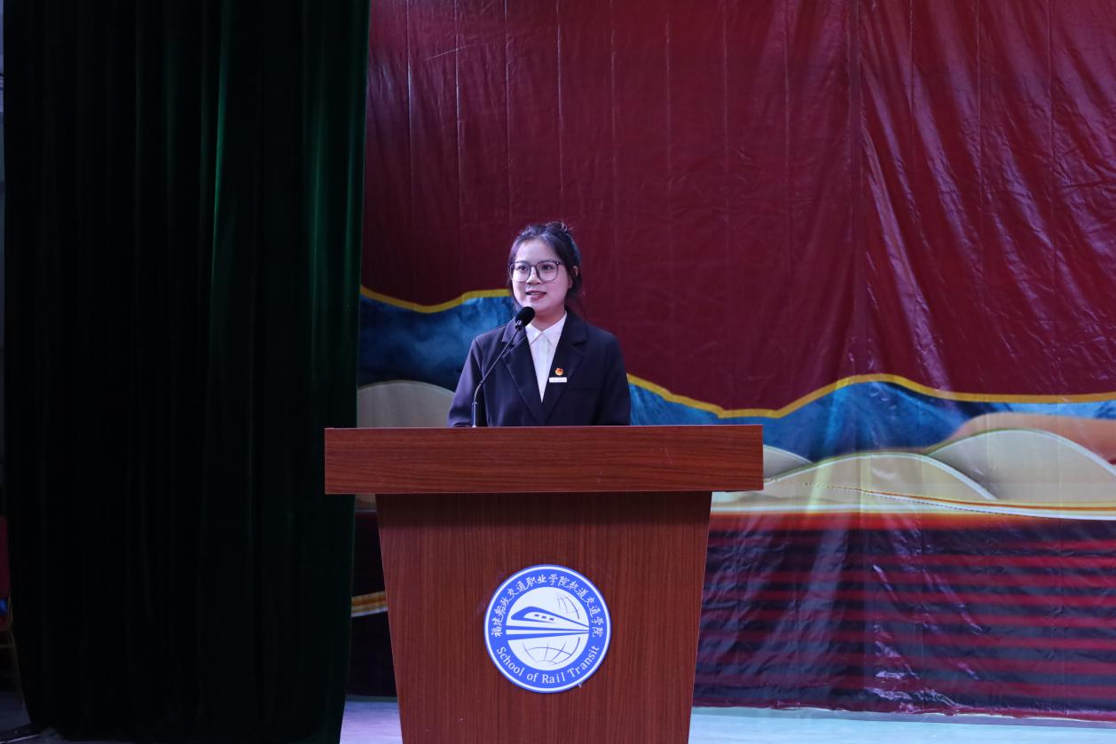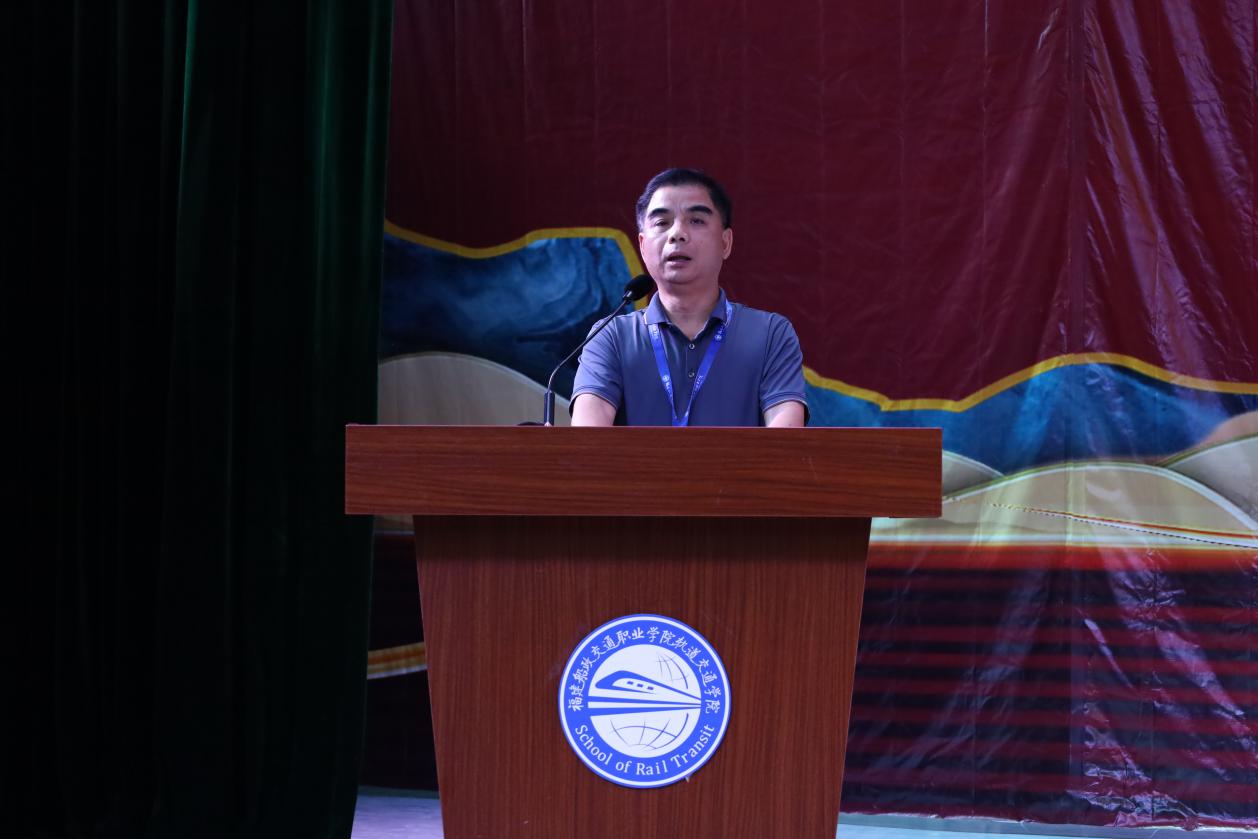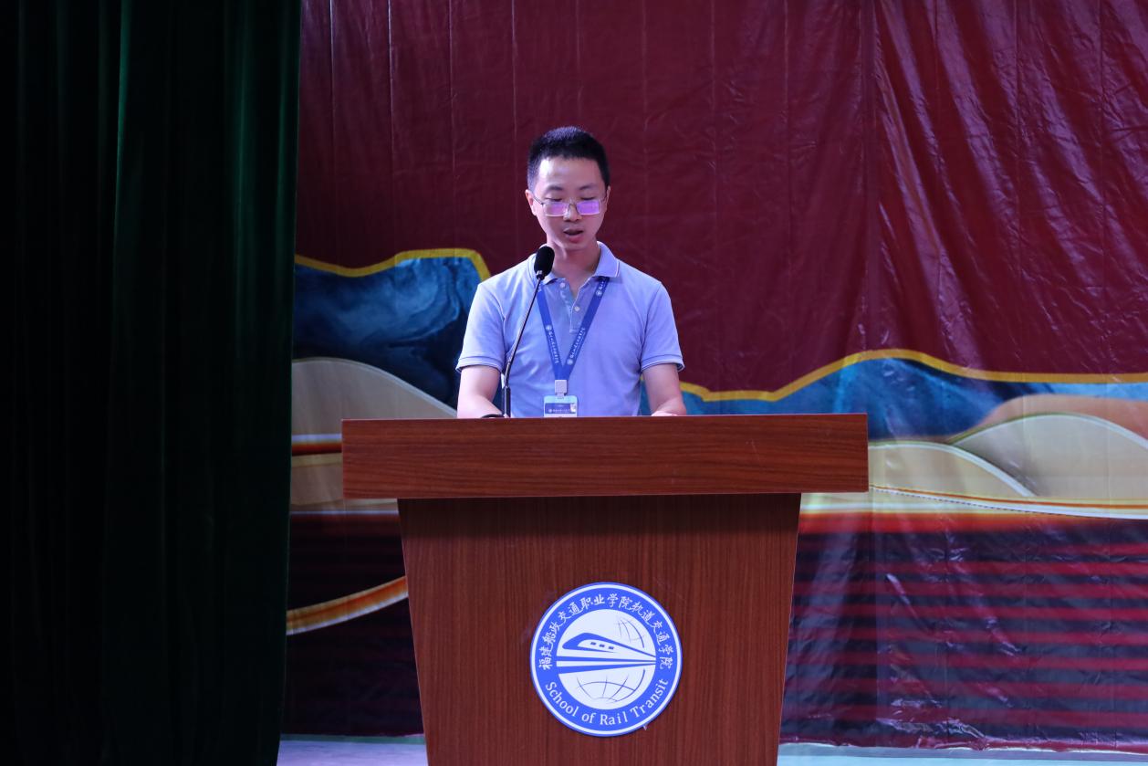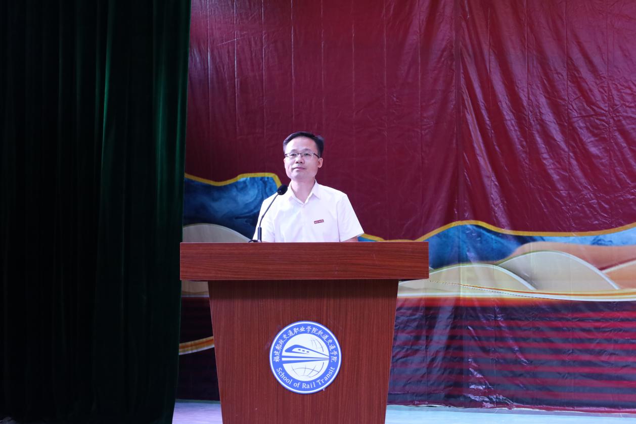 最后,由軌道交通學(xué)院黨總支書記孫基致詞,孫基書記希望同學(xué)們能夠勤學(xué)精技,把握機(jī)會(huì),在軌道交通學(xué)院這個(gè)大舞臺(tái)上施展自己的才華,在業(yè)余生活中多閱讀啟迪心智的經(jīng)典書目,多參與集體活動(dòng),不沉迷網(wǎng)絡(luò)游戲;要勇于擔(dān)當(dāng),當(dāng)代青年生逢盛世、肩負(fù)重任,我們應(yīng)該珍惜這個(gè)偉大的時(shí)代,不成為時(shí)代的看客,而是成為新時(shí)代的奮斗者。珍惜大學(xué)時(shí)光的每一天,追隨理想之光,擔(dān)起強(qiáng)國之任,奏響屬于自己的時(shí)代強(qiáng)音。