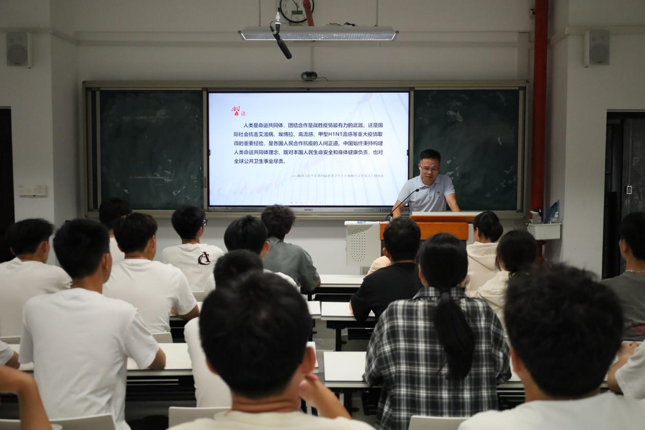 陳天炎院長(zhǎng)分別從偉大構(gòu)想應(yīng)時(shí)順勢(shì)、鮮明旗幟廣泛認(rèn)同、中國(guó)行動(dòng)彰顯擔(dān)當(dāng)、命運(yùn)與共前景可期四個(gè)部分進(jìn)行了講解。并通過引入新冠肺炎疫情、世界發(fā)展面臨的難題等例子,為同學(xué)們闡述了構(gòu)建人類命運(yùn)共同體的必要性、構(gòu)建人類命運(yùn)共同體面臨的挑戰(zhàn)、構(gòu)建人類命運(yùn)共同體面臨難得機(jī)遇。