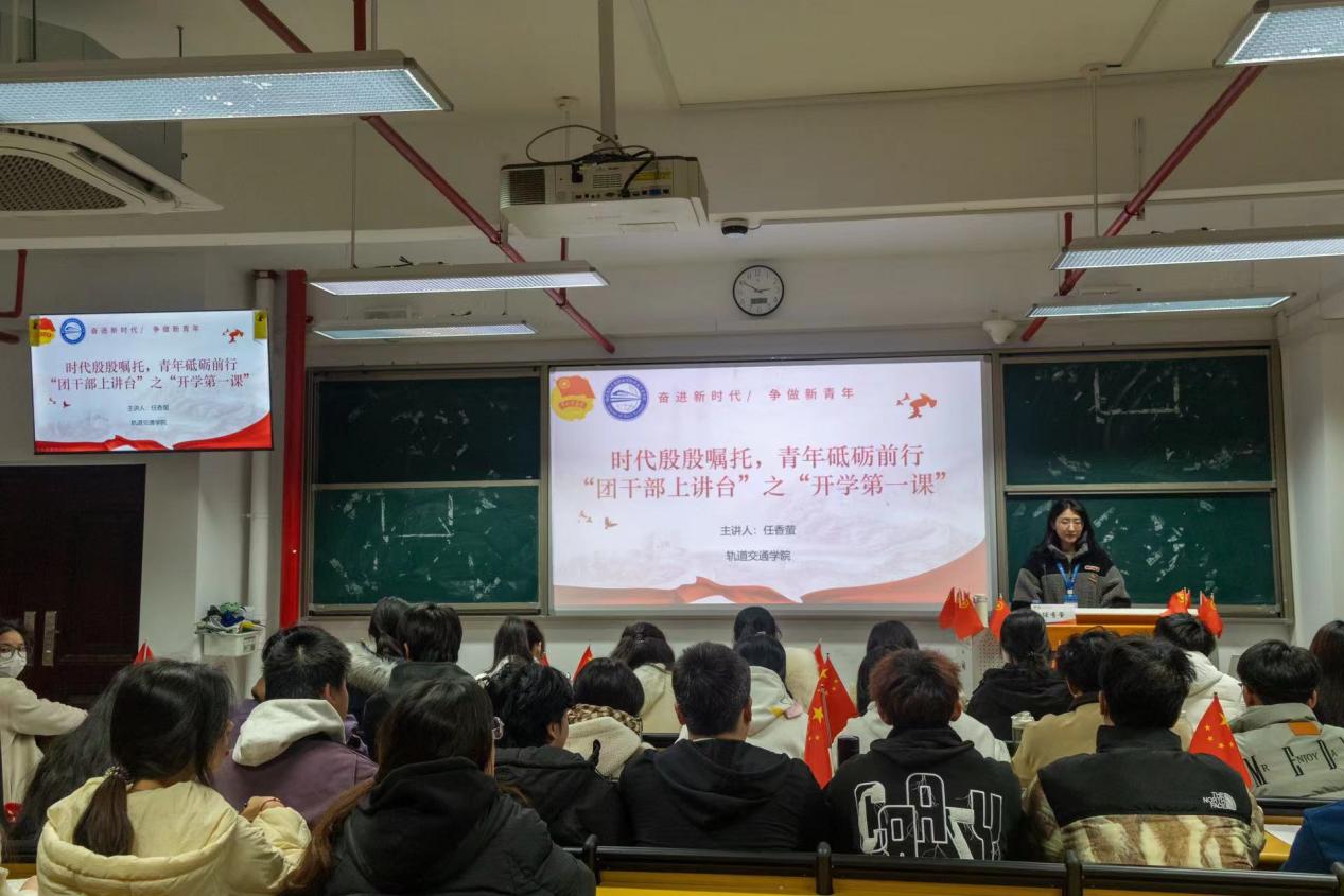 為學(xué)習(xí)貫徹習(xí)近平新時代中國特色社會主義思想,重視青年、培養(yǎng)青年、愛護青年、矚望青年,始終貫穿習(xí)近平總書記的“青年觀”,軌道交通學(xué)院于2023年12月開展“團干部上講臺”之“開學(xué)第一課”活動,本次活動以“時代殷殷囑托,青年砥礪前行”為題,由軌道交通學(xué)院分團委書記林欣欣、分團委副書記鄭華輝、分團委組織委員張毅、分團委宣傳委員任香螢分別為我院全體新生上團課。