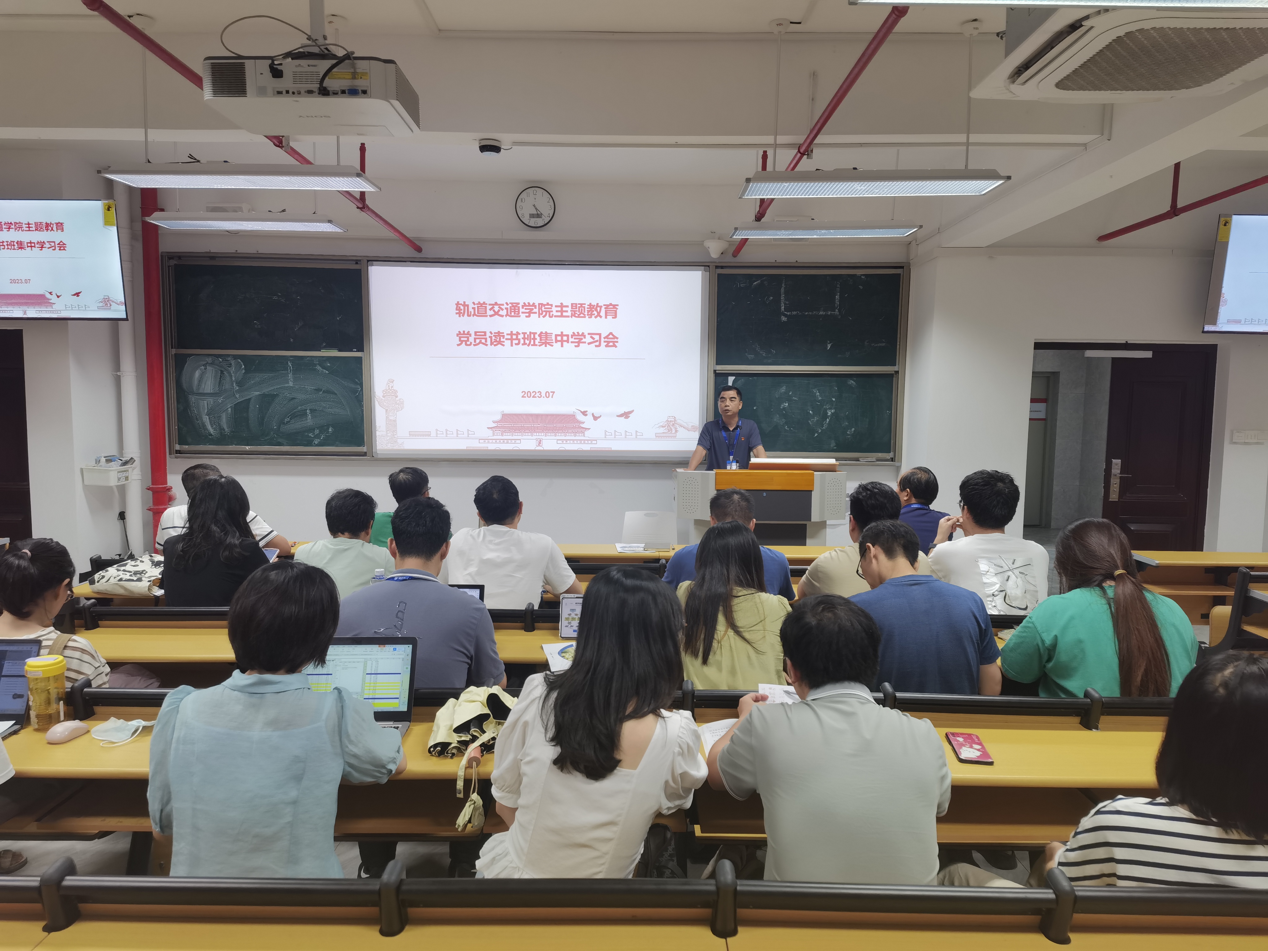 2023年7月3日,軌道交通學(xué)院黨總支組織全體教職工集中學(xué)習(xí)《習(xí)近平新時(shí)代中國(guó)特色社會(huì)主義思想的世界觀和方法論專(zhuān)題摘編》,本次會(huì)議由軌道交通學(xué)院黨總支書(shū)記孫基主持。