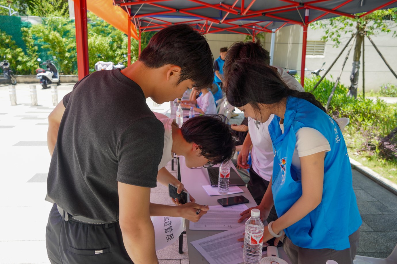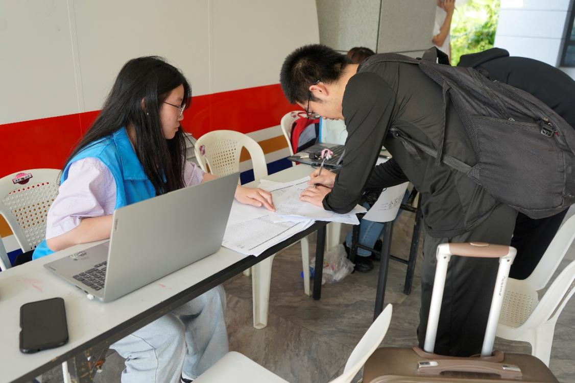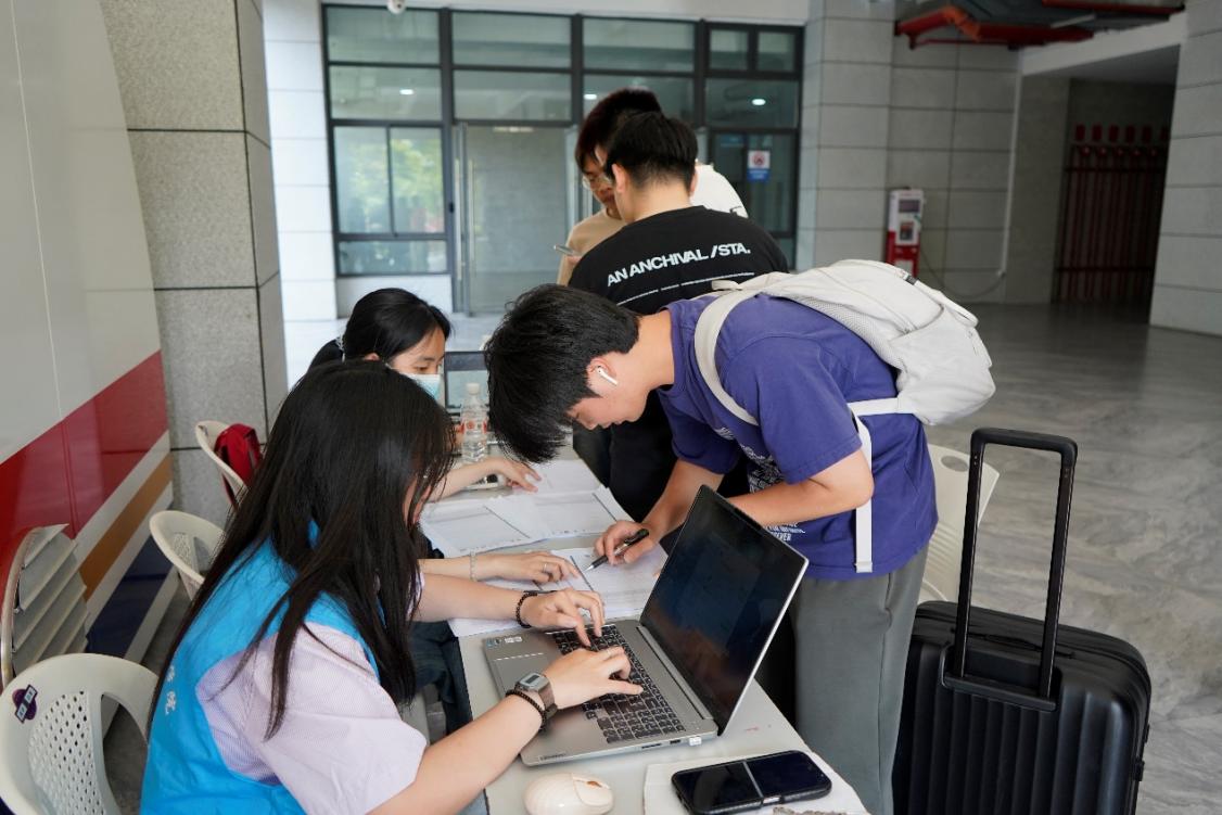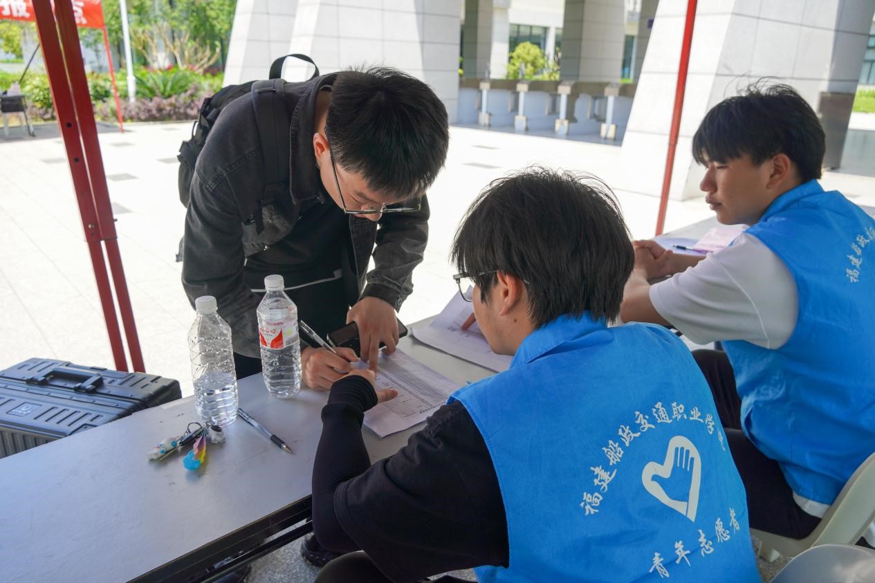燦爛的陽光穿過樹枝間的空隙,透過早霧,一縷縷灑滿了校園。2024屆的軌道學(xué)子們在志愿者的帶領(lǐng)下,來到福船園藝新樓前報到點提交相關(guān)文件。