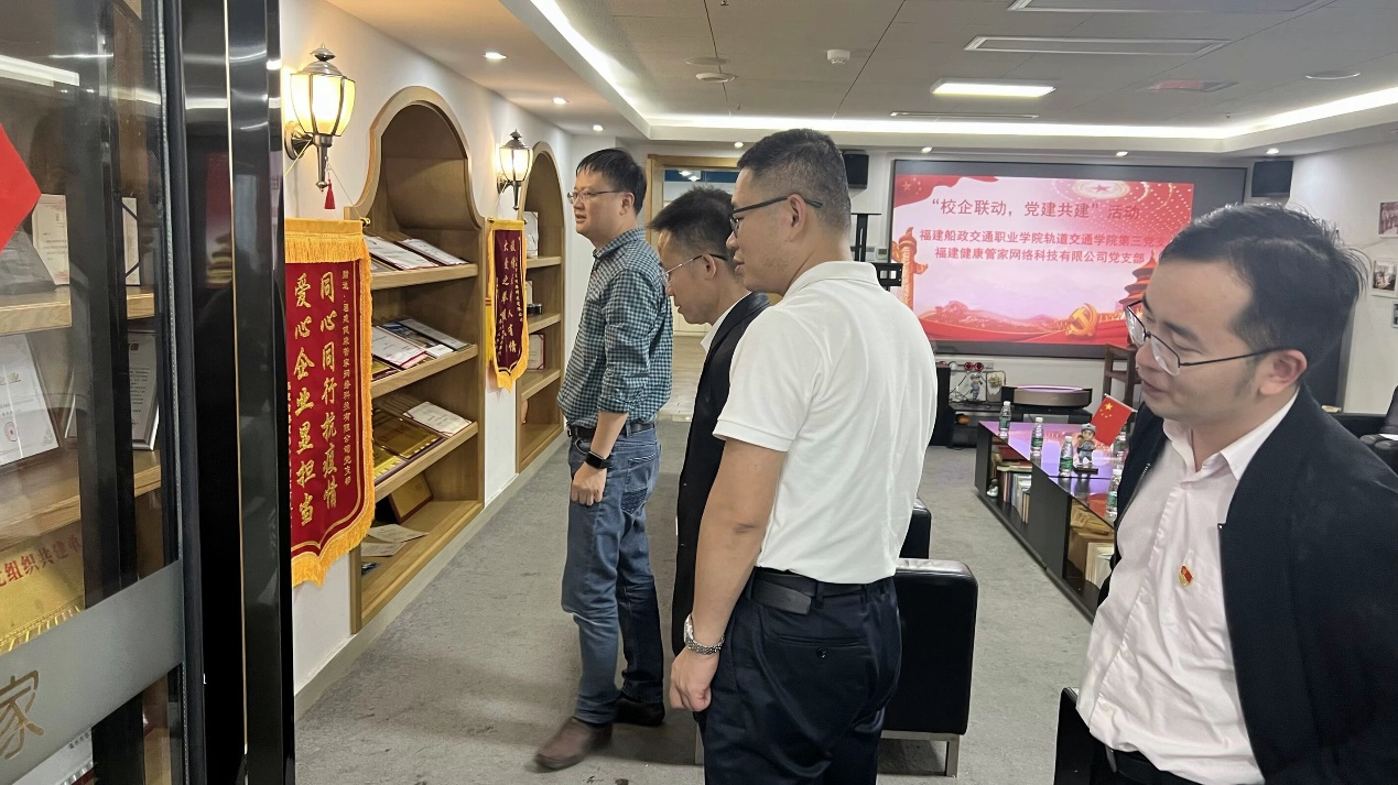隨后,軌道交通學(xué)院第三黨支部成員參觀了福建健康管家網(wǎng)絡(luò)科技有限公司黨支部黨建工作室,聽取了公司黨支部“134+”黨建模式的結(jié)構(gòu)設(shè)計(jì)理念和實(shí)施進(jìn)展,并就公司研發(fā)的醫(yī)療設(shè)備裝載高速列車進(jìn)行旅客健康監(jiān)測和診療的可行性進(jìn)行了熱烈的討論。