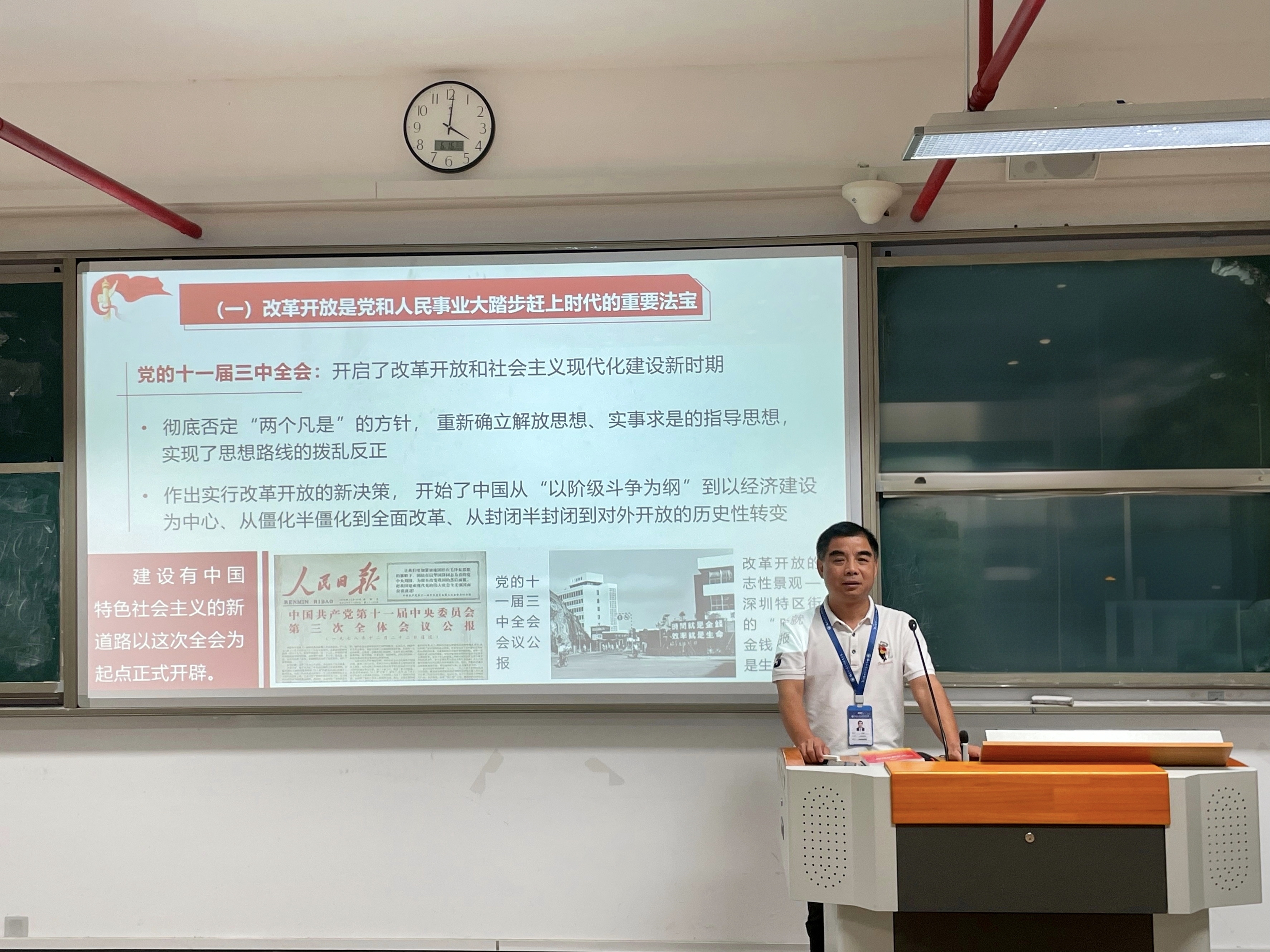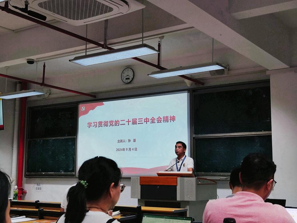 為深入學(xué)習(xí)貫徹黨的二十屆三中全會(huì)精神,進(jìn)一步加深學(xué)院全體教職工對(duì)《中共中央關(guān)于進(jìn)一步全面深化改革、推進(jìn)中國(guó)式現(xiàn)代化的決定》的學(xué)習(xí)理解,9月4日,軌道交通學(xué)院黨總支書(shū)記孫基進(jìn)行專題宣講,軌道交通學(xué)院全體教職工參加會(huì)議。