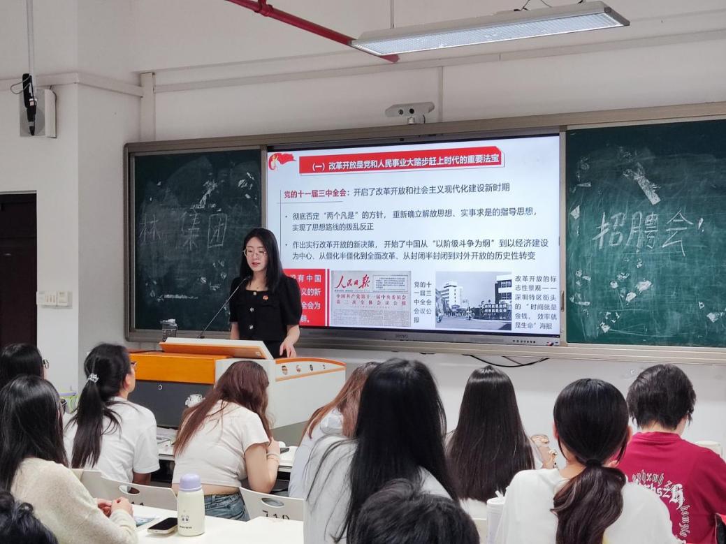 為深入學(xué)習(xí)貫徹黨的二十屆三中全會(huì)精神,進(jìn)一步加深學(xué)院全體教職工對(duì)《中共中央關(guān)于進(jìn)一步全面深化改革、推進(jìn)中國(guó)式現(xiàn)代化的決定》的學(xué)習(xí)理解,9月6日-9月10日,軌道交通學(xué)院四位教師團(tuán)干對(duì)學(xué)院學(xué)生干部、各班級(jí)展開專題宣講,帶領(lǐng)青年學(xué)生深學(xué)細(xì)悟黨的二十屆三中全會(huì)精神。