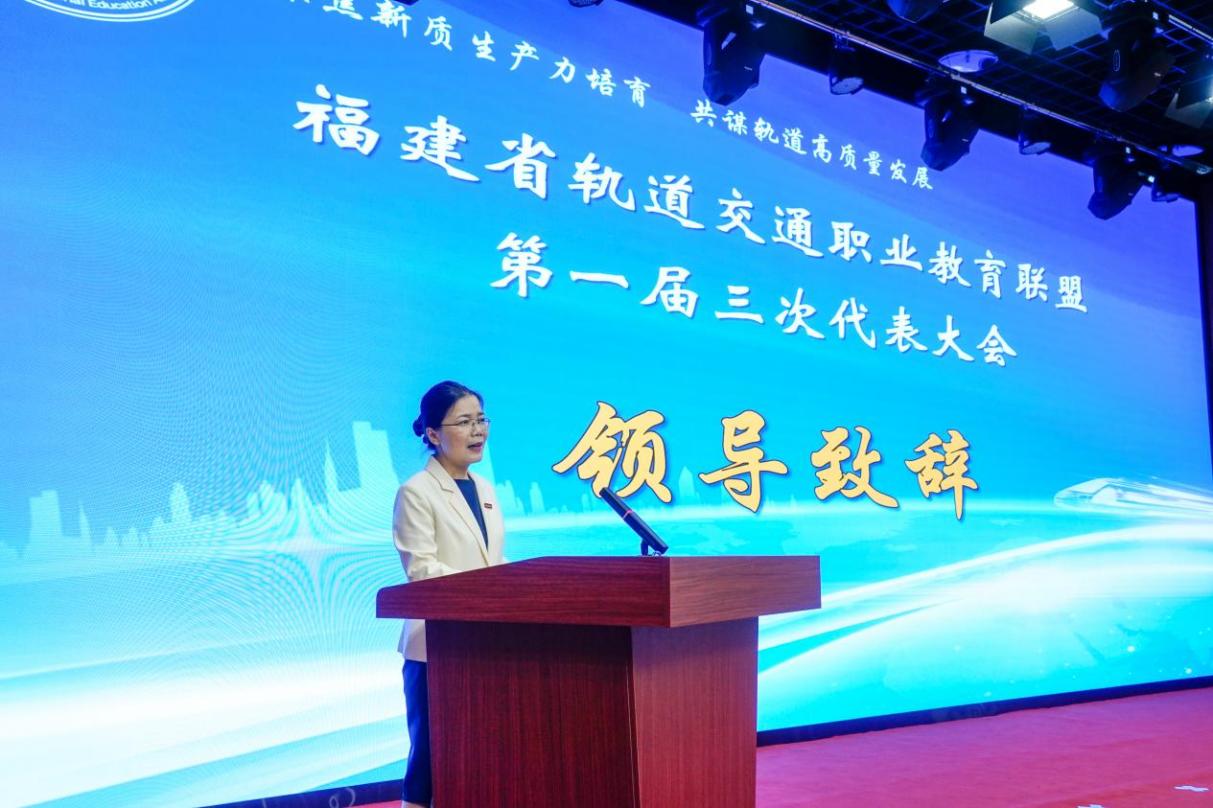 本次大會由福建船政交通職業(yè)學院和福建省軌道交通職業(yè)教育聯(lián)盟主辦。福建船政交通職業(yè)學院黨委委員、副校長陳艷紅致辭,對聯(lián)盟兩年來的工作表示肯定。她指出,聯(lián)盟各成員單位能夠發(fā)揮各自的特色和優(yōu)勢,強化校企合作、產(chǎn)教融合,相互協(xié)作支持,共享優(yōu)質(zhì)資源,加快推進高素質(zhì)技術(shù)技能人才培養(yǎng),服務(wù)軌道交通發(fā)展,不斷為交通強國建設(shè)培養(yǎng)更多的能工巧匠、大國工匠。