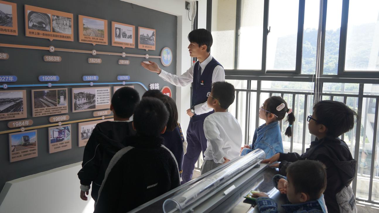 2024 年 11 月 29 日,我院與軌道交通協(xié)會共同舉辦了禮儀講解志愿服務活動?;顒又校∨笥褌冊谥v解員的帶領下走進城市軌道發(fā)展歷程展示室。他們圍在展示板前,專注地聆聽著軌道交通的歷史。展示板上詳細記錄了世界和中國軌道交通的關鍵發(fā)展節(jié)點,孩子們眼中閃爍著好奇與求知的光芒,仿佛穿梭在時光隧道中,感受著軌道交通從無到有、從簡單到復雜的演變過程。