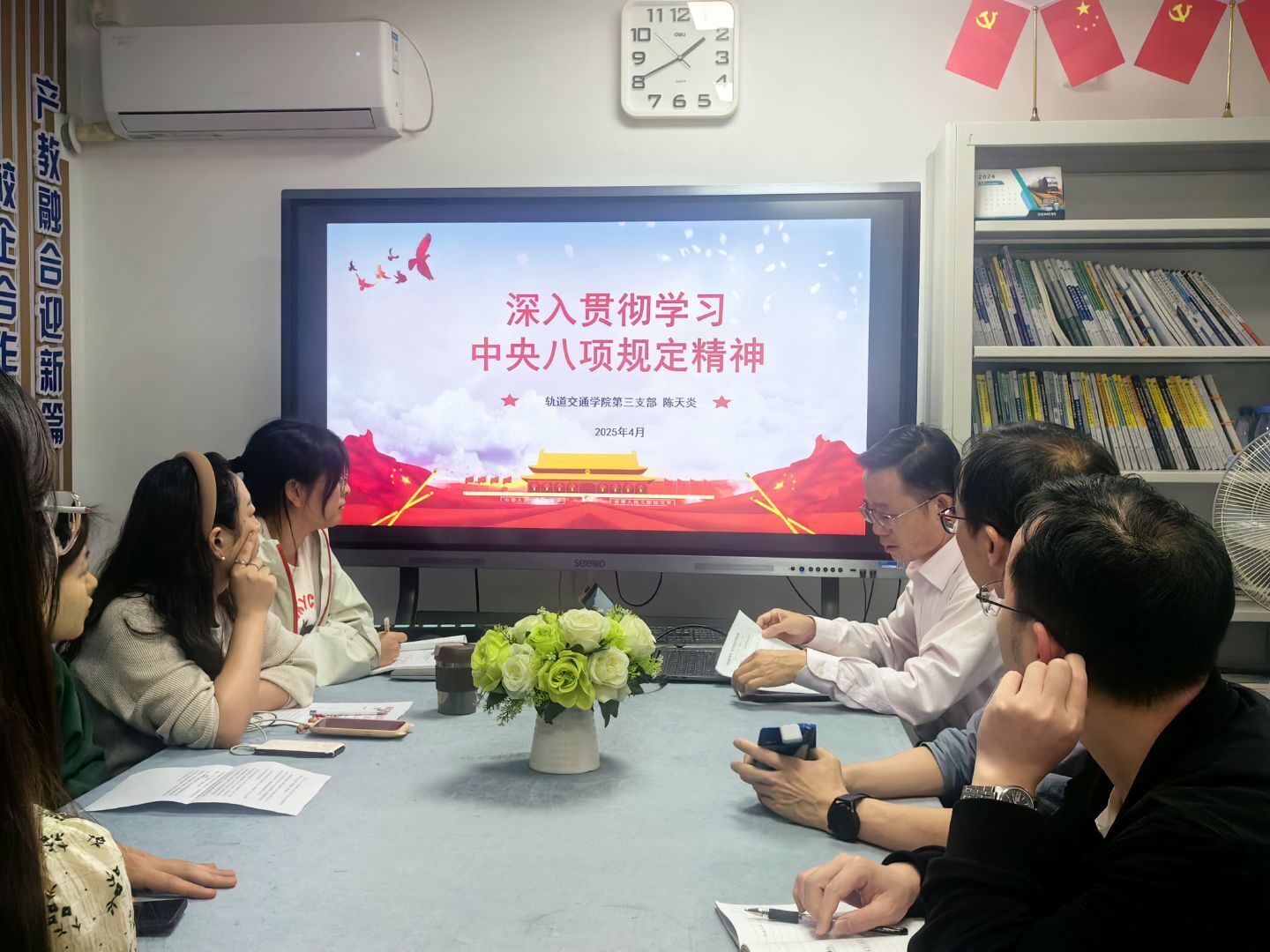 為深入推進(jìn)黨風(fēng)廉政建設(shè),強(qiáng)化黨員干部紀(jì)律意識和作風(fēng)建設(shè),軌道交通學(xué)院第三黨支部在校友樓2樓會議室集中學(xué)習(xí)了《中共中央八項(xiàng)規(guī)定及實(shí)施細(xì)則》在濃厚的學(xué)習(xí)氛圍中深刻領(lǐng)悟中央八項(xiàng)規(guī)定精神的內(nèi)涵與重要意義。