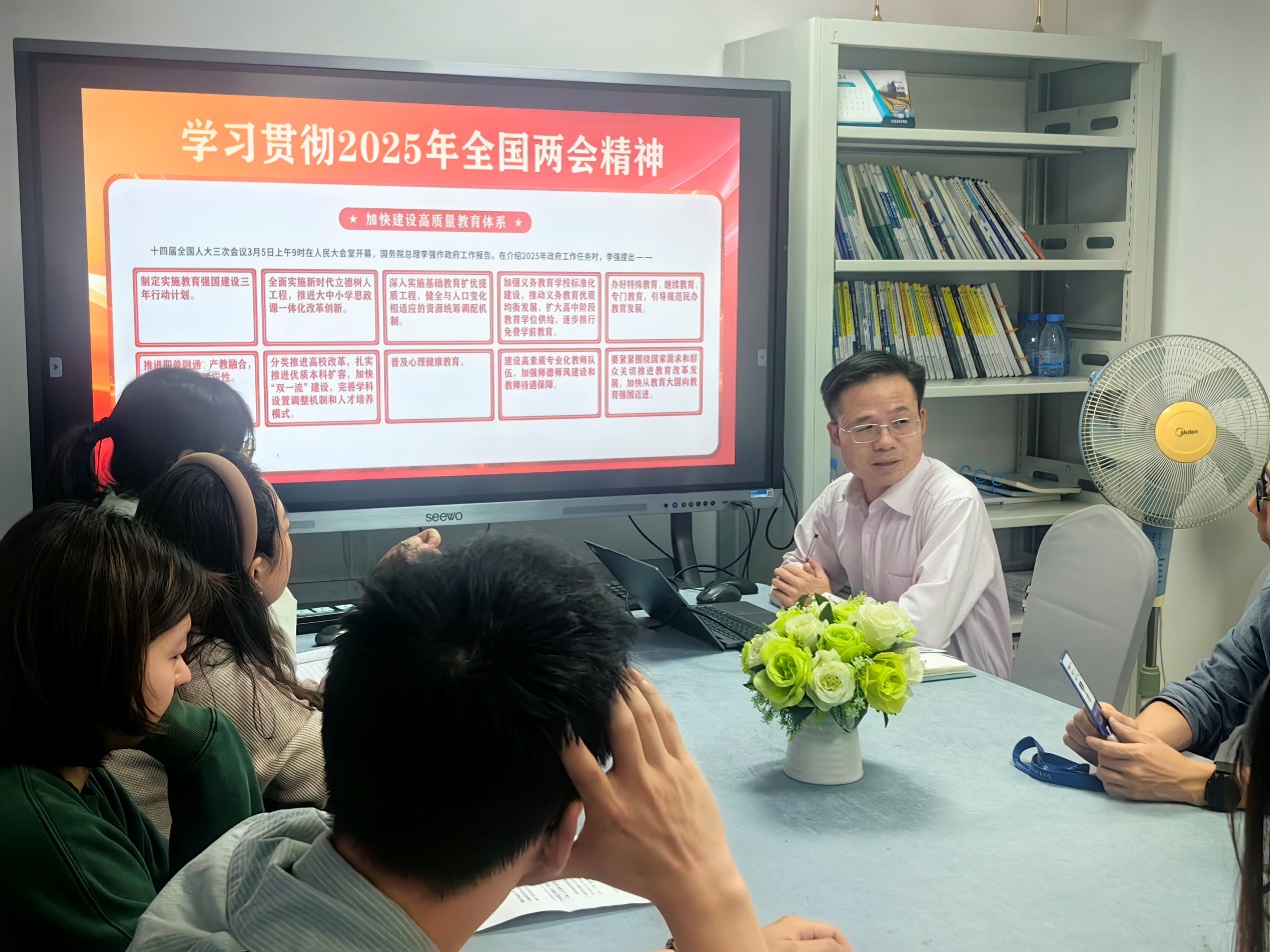在講解過程中,陳天炎書記圍繞習(xí)近平總書記在全國兩會期間的重要講話精神展開。談到政府工作報告中的教育相關(guān)內(nèi)容,陳天炎書記尤為關(guān)注產(chǎn)教融合與人才培養(yǎng)。他分享道,報告中強調(diào)深化產(chǎn)教融合,這與學(xué)院一直以來的發(fā)展思路不謀而合。學(xué)院應(yīng)以此為契機,加強與企業(yè)的合作,打造更多高質(zhì)量的實習(xí)實訓(xùn)基地,讓學(xué)生在實踐中提升專業(yè)技能,更好地適應(yīng)社會需求。陳書記還列舉了一些成功的產(chǎn)教融合案例,啟發(fā)黨員教師思考如何將理論教學(xué)與實踐更好地結(jié)合。