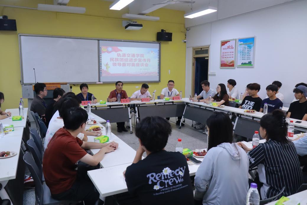 在民族團結(jié)進步月期間,學(xué)院圍繞“福籽同心愛中華·第十八個民族團結(jié)進步宣傳月”主題,開展了系列活動。一是舉辦“我與領(lǐng)導(dǎo)面對面”座談會,學(xué)院領(lǐng)導(dǎo)與各民族學(xué)生代表親切交流,傾聽學(xué)生在學(xué)習(xí)、生活中的困難和需求,解答學(xué)生疑問,鼓勵各民族學(xué)生相互學(xué)習(xí)、共同進步。二是開展民族團結(jié)進步演講比賽,選手們分享民族團結(jié)故事,倡導(dǎo)各民族同學(xué)團結(jié)友愛、互幫互助,營造了濃厚的民族團結(jié)氛圍。三是組織各班級召開民族團結(jié)進步主題班會,通過觀看民族團結(jié)宣傳片、知識問答、小組討論等形式,讓同學(xué)們深入了解民族團結(jié)的重要意義,增強了民族凝聚力。