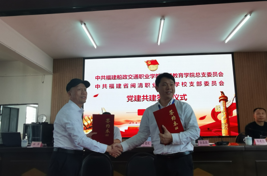 在黨建共建會議上,通識教育學院院長、閩清縣教育局副局長方儒欽希望借此機會,實現(xiàn)雙方良好互動,做到資源共享、工作互動、優(yōu)勢互補、發(fā)展共贏,共同提高服務(wù)基層、服務(wù)師生的能力,促進雙方工作創(chuàng)新發(fā)展。通識教育學院金晶晶副院長和閩清職專陳友水校長分別介紹本單位情況及本次活動的意義,表示希望通過本次主題黨日活動,推動黨史學習教育更加入腦入心,進一步增強基層黨組織的凝聚力和戰(zhàn)斗力,同時以雙方共建結(jié)對簽約為契機,構(gòu)建院校支部結(jié)對幫帶、雙向促進、共同提高黨建格局。隨后,雙方深入交流了黨史學習教育體會,并探討以教師送教、活動共辦等為手段,完善中、高職院校之間互動、共同發(fā)展的模式和途徑,共享優(yōu)質(zhì)教育資源,提高整體辦學質(zhì)量。會上,雙方簽訂了黨建共建協(xié)議。