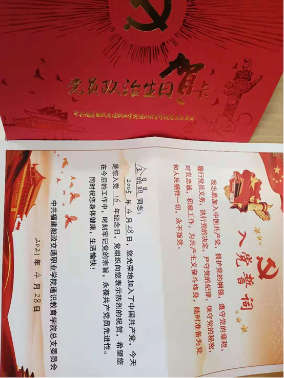 為深入開展黨史學(xué)習(xí)教育,進(jìn)一步加強(qiáng)黨員理想信念教育,創(chuàng)新思想政治工作的方式方法,近日,通識教育學(xué)院黨總支把開展“黨員過政治生日”工作納入黨建工作和隊(duì)伍建設(shè)工作??傊φ彰课稽h員的入黨時(shí)間(被確定為預(yù)備黨員的時(shí)間),建立黨員“政治生日”活動名冊,排出“政治生日”序列,明確要求在每名黨員“政治生日”當(dāng)天送去一份“政治生日”賀卡,并開展談心談話。通過開展“黨員過政治生日”,加強(qiáng)了黨員理想信念教育,強(qiáng)化黨員的身份意識和責(zé)任意識,增強(qiáng)黨員榮譽(yù)感、歸屬感,搭建黨組織與黨員之間的“連心橋”,提高黨總支的向心力、凝聚力和戰(zhàn)斗力,推進(jìn)黨史學(xué)習(xí)教育走深走實(shí)。