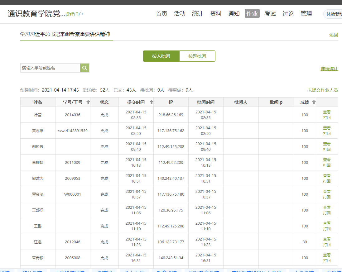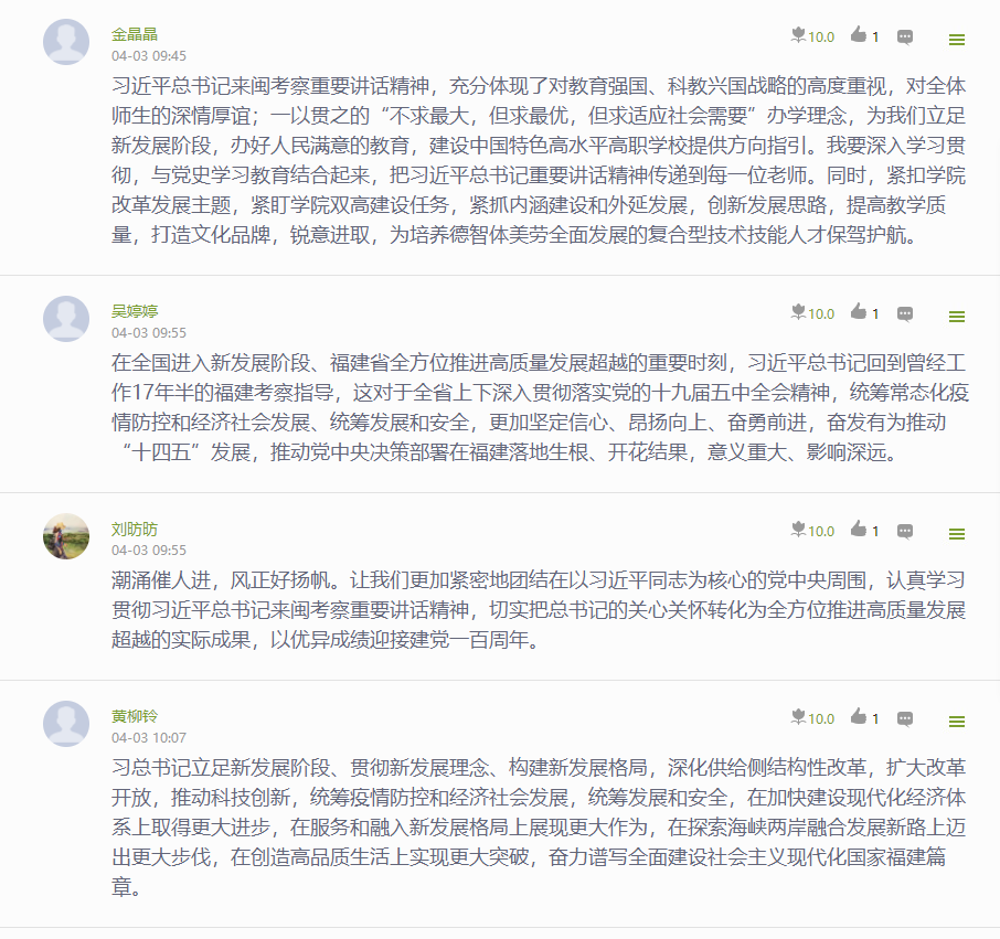 通識(shí)教育學(xué)院黨總支創(chuàng)新黨史學(xué)習(xí)教育形式,利用“學(xué)習(xí)通”線上黨建平臺(tái)的討論和作業(yè)等模塊,開(kāi)展黨史學(xué)習(xí)教育,以及黨史和習(xí)近平總書(shū)記來(lái)閩考察重要講話(huà)精神應(yīng)知應(yīng)會(huì)線上測(cè)試,增強(qiáng)學(xué)習(xí)實(shí)效。同時(shí),每日在網(wǎng)頁(yè)和微信公眾號(hào)上推送“黨史上的今天”和黨史學(xué)習(xí)相關(guān)內(nèi)容,通報(bào)總支黨員前日總支“學(xué)習(xí)強(qiáng)國(guó)”積分情況,督促每位教師認(rèn)真學(xué)習(xí)。