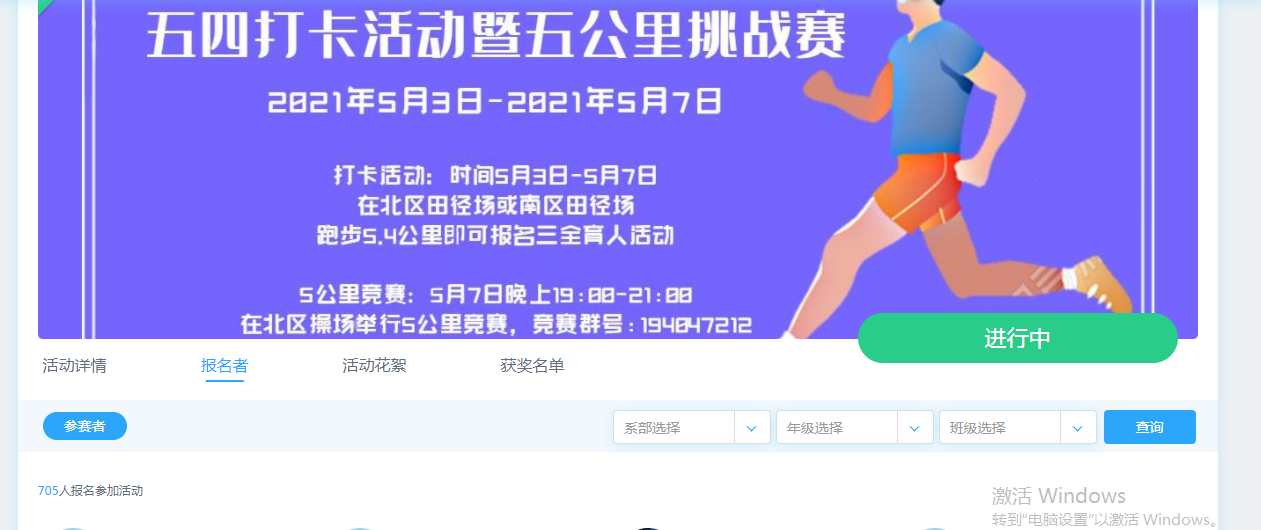 同時為了展現(xiàn)五四青年節(jié)的青年精神。特此發(fā)起了這次五四打卡活動暨五公里挑戰(zhàn)賽奔跑活動。