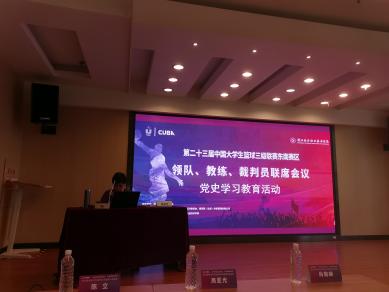 比賽期間,組委會(huì)將黨史學(xué)習(xí)教育與賽事相結(jié)合,在領(lǐng)隊(duì)、教練、裁判員聯(lián)席會(huì)上舉辦“黨史學(xué)習(xí)教育”?;顒?dòng)內(nèi)容詳實(shí),梳理了習(xí)近平總書(shū)記主政浙江期間制定的“八八戰(zhàn)略”,深入介紹習(xí)近平總書(shū)記如何將欠發(fā)達(dá)鄉(xiāng)鎮(zhèn)村列入工作規(guī)劃、納入整體發(fā)展框架,進(jìn)行專門(mén)安排和部署。本次黨史學(xué)習(xí)教育讓各領(lǐng)隊(duì)、教練、裁判員在外出比賽之余收獲滿滿,收到高度肯定。會(huì)后,我院第二黨支部郭建忠書(shū)記在宿舍內(nèi)分別對(duì)男女籃球隊(duì)隊(duì)員召開(kāi)座談會(huì),向同學(xué)們介紹習(xí)近平總書(shū)記在浙江的工作事跡,解析了在全球疫情肆虐的環(huán)境下,我國(guó)各項(xiàng)體育賽事仍在順利開(kāi)展的原因,體現(xiàn)了我黨在疫情防控方面做出的卓越貢獻(xiàn)。會(huì)后同學(xué)們紛紛表示,當(dāng)前的比賽機(jī)會(huì)來(lái)之不易,彰顯我國(guó)社會(huì)主義制度的優(yōu)越性,我們要珍惜機(jī)會(huì),每個(gè)同學(xué)都要有一顆愛(ài)國(guó)愛(ài)黨的心。通過(guò)此次活動(dòng),極大激發(fā)了同學(xué)們的愛(ài)國(guó)主義情懷,達(dá)到“以體育德 以賽育人”的育人目標(biāo)。