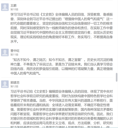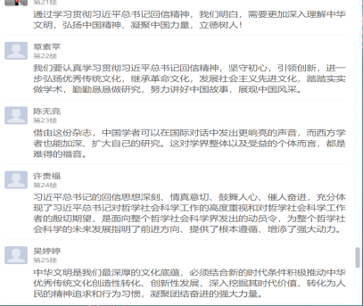 習(xí)近平總書記的回信在支部黨員中引起強(qiáng)烈反響,不僅在學(xué)習(xí)現(xiàn)場熱烈交流學(xué)習(xí)感想,還在線上學(xué)習(xí)通總支討論區(qū)紛紛留言發(fā)表心得體會(huì)。