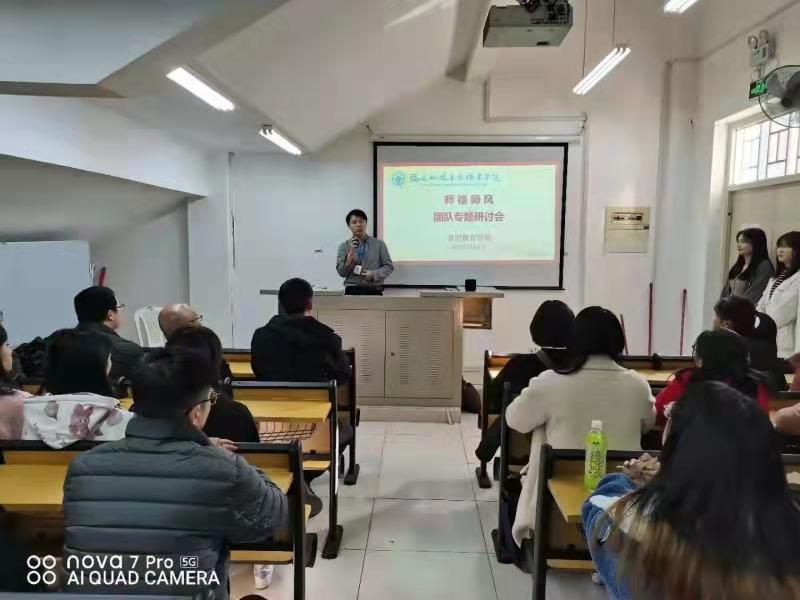 12月1日下午,通識(shí)教育學(xué)院在體育教研部教室召開(kāi)師德團(tuán)隊(duì)專題研討活動(dòng),通識(shí)教育學(xué)院師德師風(fēng)建設(shè)團(tuán)隊(duì)出席,各二級(jí)學(xué)院學(xué)生代表參加,會(huì)議由通識(shí)教育學(xué)院金晶晶副院長(zhǎng)主持。金晶晶、曾雅琴、沈焰焰、甘媛、吳婷婷、黃愛(ài)梅、林佳麗、閆建瑞、許貴福、趙少杰等團(tuán)隊(duì)教師先后交流發(fā)言,介紹教師職業(yè)生涯成長(zhǎng)經(jīng)歷,分享師德學(xué)習(xí)體會(huì)和感悟。