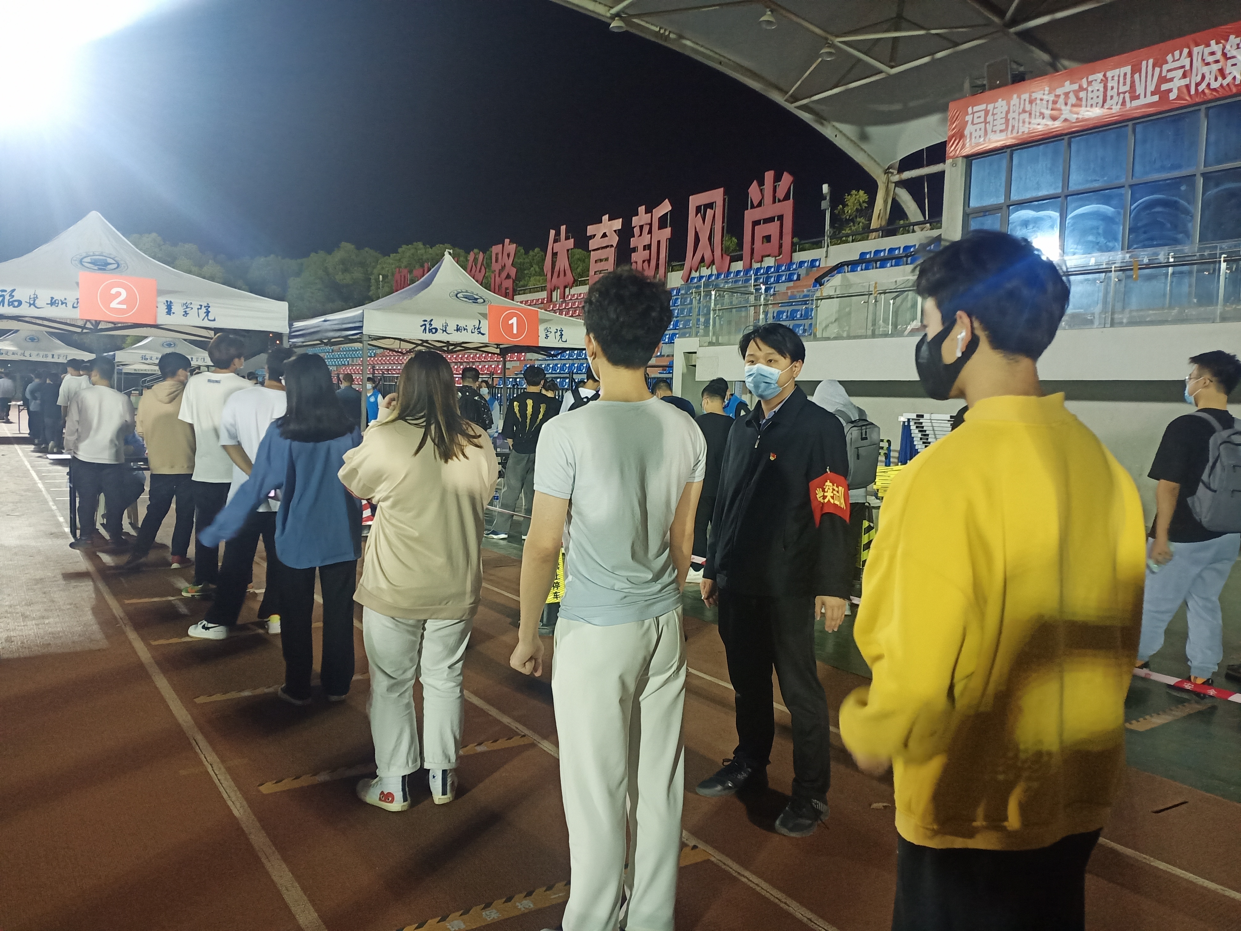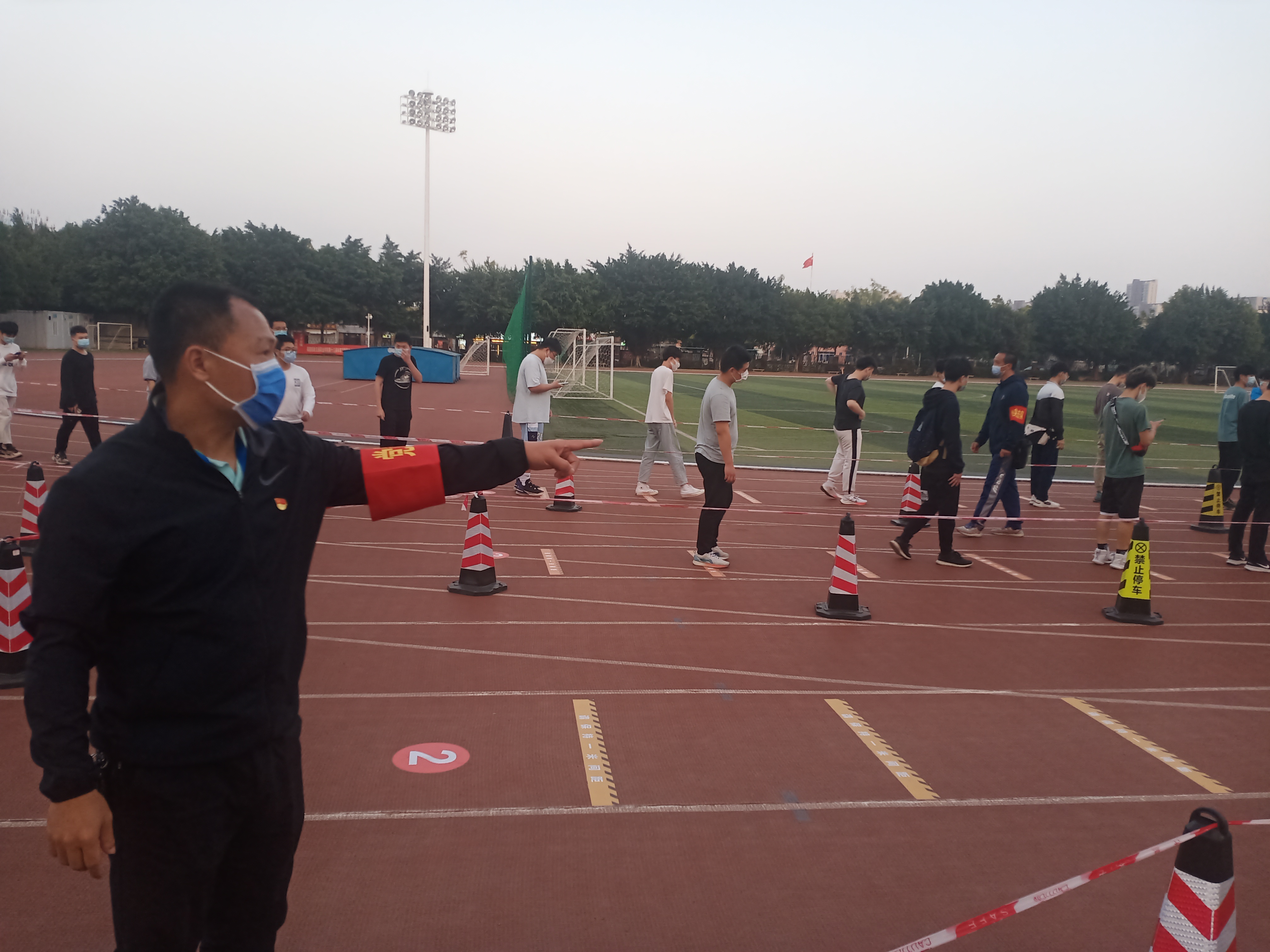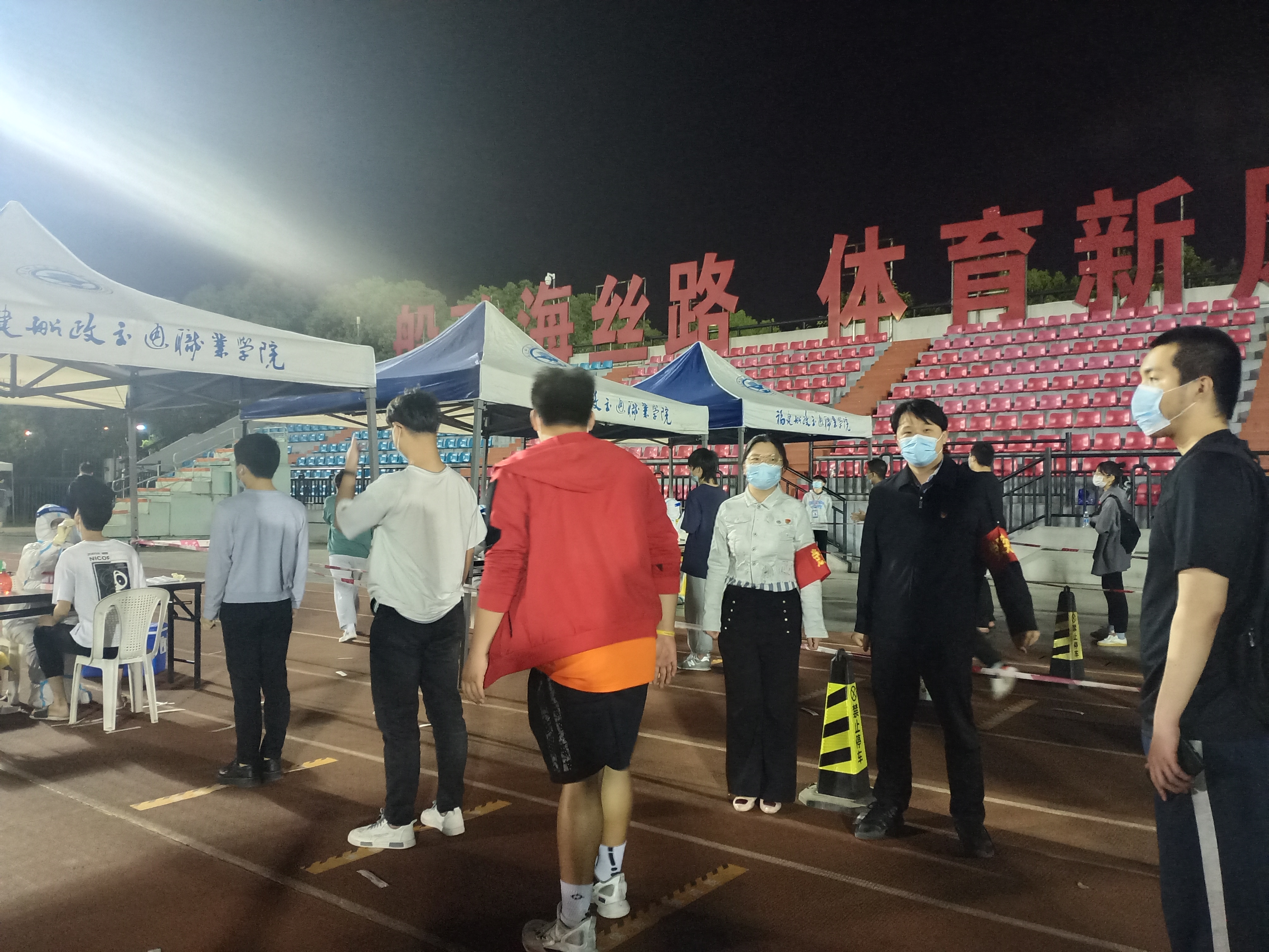 下午16時(shí),北區(qū)田徑場的核酸檢測工作開始,學(xué)生全程佩戴口罩,有序排隊(duì)、掃碼、登記、檢測,在后勤管理處指導(dǎo)下,黨員突擊隊(duì)現(xiàn)場指揮,將隊(duì)伍調(diào)整為五路縱隊(duì),醫(yī)護(hù)人員細(xì)心高效地為學(xué)生采樣。截至晚上22:00,完成核酸檢測工作。