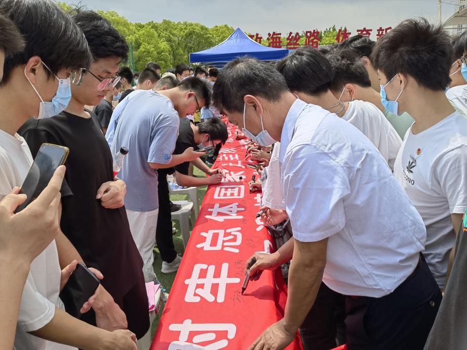 活動中,學(xué)生代表張政同學(xué),帶領(lǐng)大家進(jìn)行“爭做新時代國家安全的鋼鐵衛(wèi)士宣誓”?;顒幼詈?,進(jìn)行國家安全教育日簽名儀式,師生們有序走向簽字席簽下自己作為踐行者的姓名。