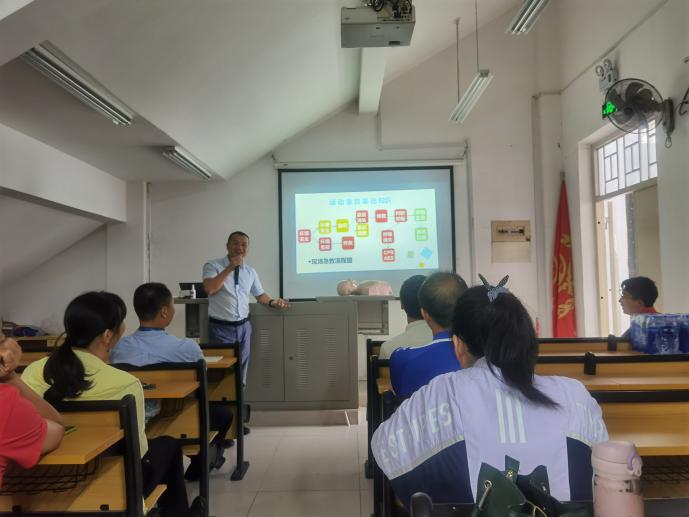 此次培訓分為理論知識學習和現(xiàn)場實操訓練。在理論知識學習環(huán)節(jié),專家對應急救護的法律法規(guī)、判斷救護條件、心肺復蘇方法等內(nèi)容進行了詳細的講解和分析。在實操模擬環(huán)節(jié),教職工們積極參與訓練,將基礎知識轉(zhuǎn)化為模擬現(xiàn)場救護行為,專家現(xiàn)場指導每位教師進行實際操作,有效提高了教師們的運動損傷的急救技能。
