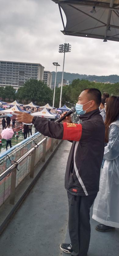 “請同學(xué)們保持一米間隔,打開健康碼,把手機(jī)屏幕調(diào)亮”。每天,郭建忠在學(xué)院青春田徑場(原名:北區(qū)田徑場)協(xié)調(diào)校內(nèi)全員核酸檢測人員秩序,助力校內(nèi)全員核酸檢測高效有序進(jìn)行。校內(nèi)全員核酸檢測結(jié)束后,郭建忠和章青松、校園保安一起整理青春體育場核酸檢測現(xiàn)場。郭建忠說,“我們黨員要從大局出發(fā),積極服務(wù)學(xué)校疫情防控工作”。