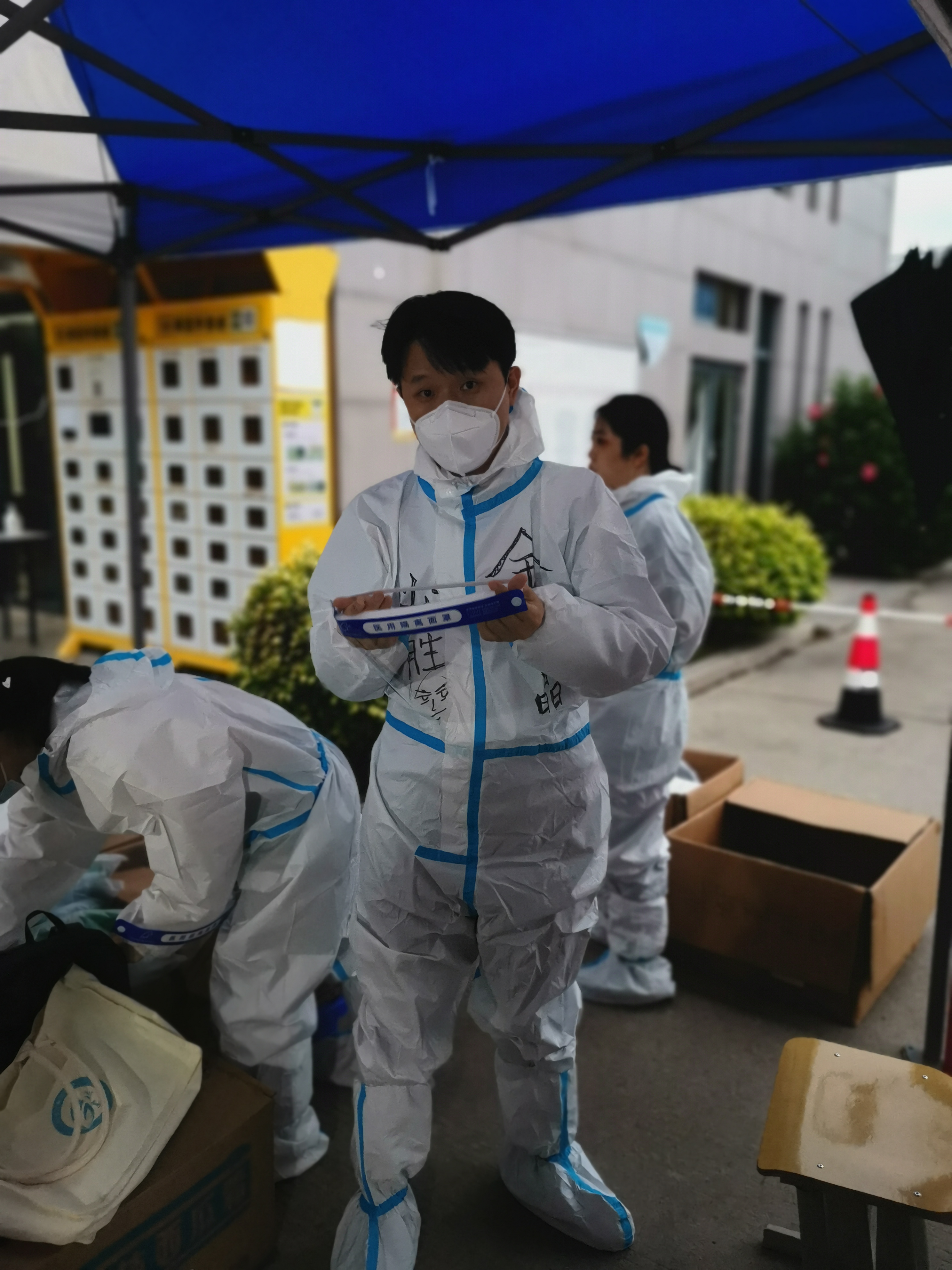 “請排好隊,每人保持1米距離。在倉山區(qū)萬里村核酸檢測點(diǎn)會看到一名多面志愿者,有時身穿紅馬甲,有條不紊地指揮著前來做核酸檢測的群眾,有時身穿“大白服”,協(xié)助核酸信息采集,有時幫忙檢測點(diǎn)做好核酸檢測準(zhǔn)備工作。