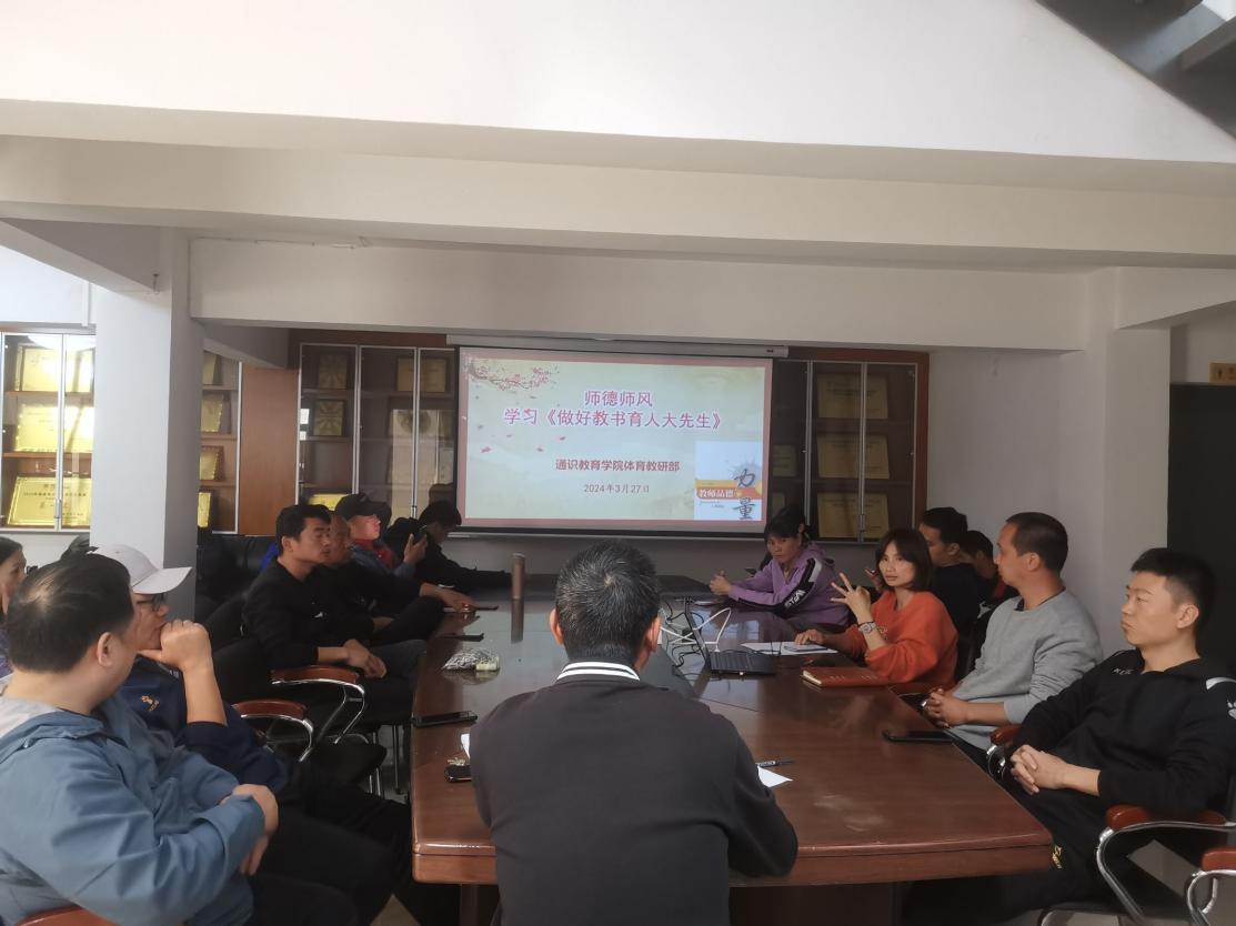 3月27日下午,通識(shí)教育學(xué)院各教研室組織學(xué)習(xí)《中華人民共和國(guó)愛(ài)國(guó)主義教育法》、《事業(yè)單位工作人員處分規(guī)定》和《做好教書育人大先生》,引導(dǎo)全體教師提高個(gè)人綜合素質(zhì),夯實(shí)教育教學(xué)基本功,進(jìn)一步加強(qiáng)新時(shí)代愛(ài)國(guó)主義教育,傳承和弘揚(yáng)愛(ài)國(guó)主義精神。
