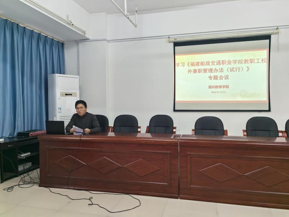 1月2日下午,通識教育學(xué)院召開期末教師大會,全體教師參會,會議總結(jié)了本學(xué)期的工作情況,部署2025年工作任務(wù)、學(xué)習(xí)《福建船政交通職業(yè)學(xué)院教職工校外兼職管理辦法<試行>》。