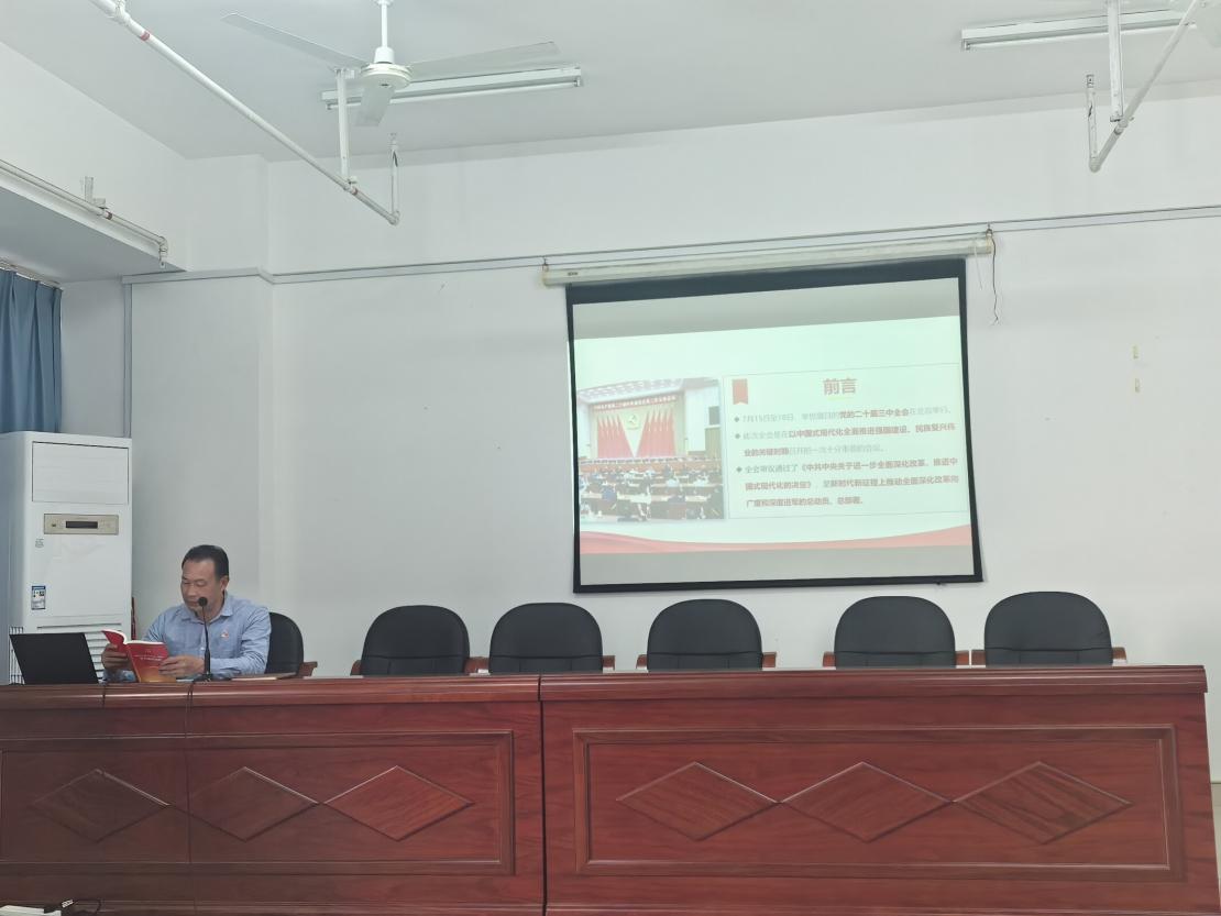 黨總支書記陳火城圍繞黨的二十屆三中全會內(nèi)容,組織學(xué)習(xí)黨的二十屆三中全會主題,學(xué)習(xí)領(lǐng)會習(xí)近平總書記在黨的二十屆三中全會上的重要講話精神,提出全力以赴抓好全會精神貫徹落實,提出下一步工作建議。他要求每位黨員同志都應(yīng)該認真學(xué)、認真思考,把思想和行動統(tǒng)一到中央精神上來,深刻領(lǐng)會全會提出的“進一步全面深化改革、推進中國式現(xiàn)代化”的戰(zhàn)略部署,領(lǐng)會“構(gòu)建高水平社會主義市場經(jīng)濟體制”“深化產(chǎn)教融合”等要求,強調(diào)高職公共基礎(chǔ)課需跳出傳統(tǒng)模式,應(yīng)主動對接產(chǎn)業(yè)需求與區(qū)域發(fā)展。
