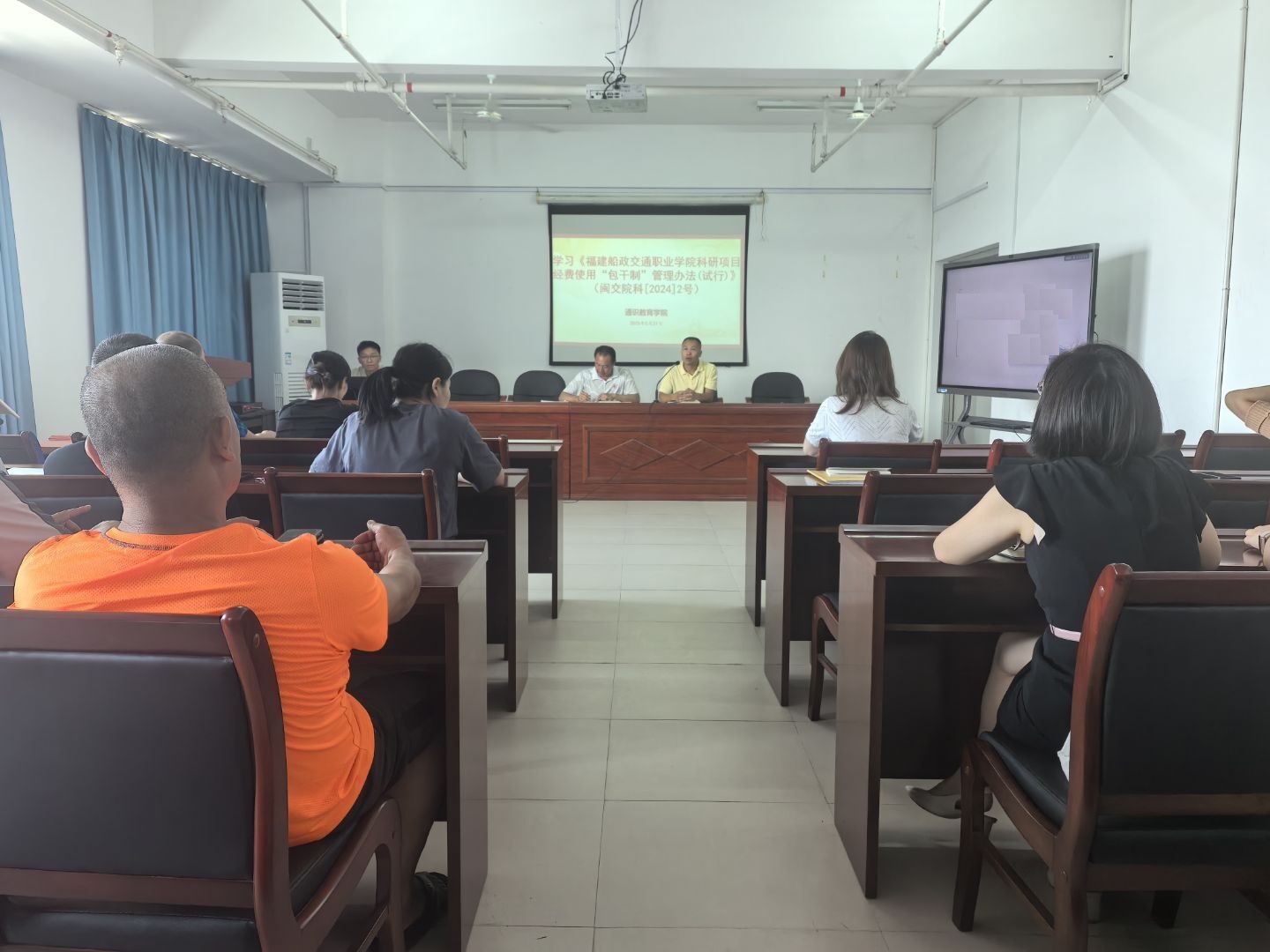 會上,郭建忠院長領(lǐng)學(xué)了《福建船政交通職業(yè)學(xué)院科研項目經(jīng)費使用“包干制”管理辦法(試行)》(閩交院科[2024]2號)和《福建船政交通職業(yè)學(xué)院科研計劃項目經(jīng)費管理辦法》(閩交院科[2024]4號)、《福建船政交通職業(yè)學(xué)院學(xué)術(shù)期刊分類目錄及學(xué)術(shù)論文認定辦法》(閩交院科[2024]7號)、《福建船政交通職業(yè)學(xué)院科研項目級別與項目負責人認定辦法》(閩交院科[2024]15號)、《福建船政交通職業(yè)學(xué)院大型儀器設(shè)備購置可行性論證管理辦法(試行)福建船政交通職業(yè)學(xué)院大型儀器設(shè)備開放共享管理辦法(試行)》(閩交院科[2024]9號)。