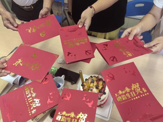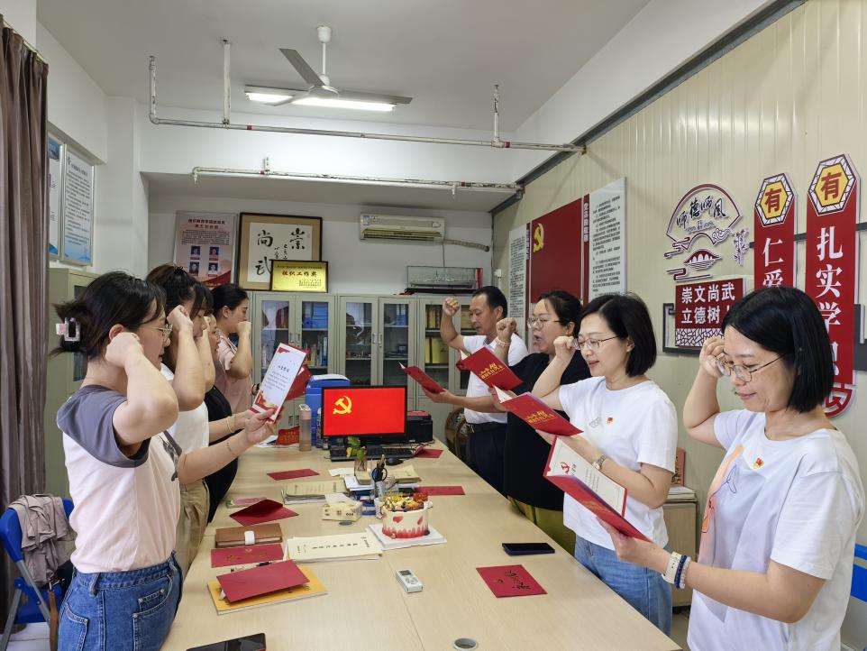 活動(dòng)伊始,支部書(shū)記為黨員教師贈(zèng)送“政治生日賀卡”。賀卡印刻入黨誓詞與黨員入黨日期,傳遞組織關(guān)懷與責(zé)任囑托。接著,黨員教師面對(duì)黨旗重溫宣誓,鏗鏘誓言響徹會(huì)場(chǎng)。隨后,支部通過(guò)活動(dòng)深化黨員身份認(rèn)同,現(xiàn)場(chǎng)洋溢著“組織溫情”與“紅色力量”的交融共鳴。