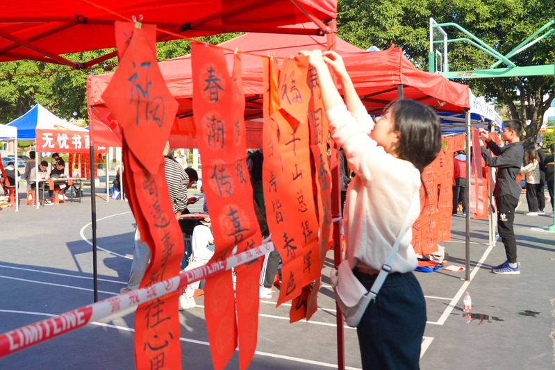 “聯(lián)動師生迎元春,祈簽送福滿交院”迎新年送春聯(lián)活動,不僅豐富了我院師生的文化生活,展示了書法文化的藝術魅力,增進師生們的課外交流聯(lián)系,促進學院和諧風氣的發(fā)展,也增添了我院歡樂祥和的新年氣氛。此次活動共送出近600幅春聯(lián),153個祈福簽。