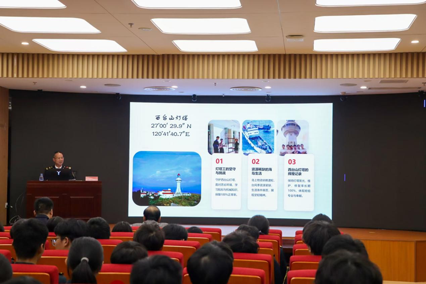 互動(dòng)環(huán)節(jié)結(jié)束后,福州航標(biāo)處馮振剛老師從航海專(zhuān)業(yè)的角度用形象生動(dòng)的案例向在場(chǎng)觀眾詳細(xì)介紹了航標(biāo)處的運(yùn)作情況。他指出要把在課堂上學(xué)到的理論與實(shí)際相結(jié)合,要大力弘揚(yáng)勞模精神、勞動(dòng)精神、工匠精神,不斷提升自身技術(shù)技能水平,以適應(yīng)科技革命和產(chǎn)業(yè)變革的需要,為實(shí)現(xiàn)中華民族偉大復(fù)興的中國(guó)夢(mèng)貢獻(xiàn)自己的青春力量。