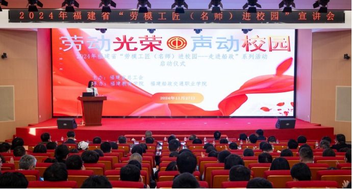11月27日下午,主題為“勞動(dòng)光榮·聲動(dòng)校園”----2024 年福建省“勞模工匠(名師)進(jìn)校園”系列活動(dòng)---走進(jìn)福建船政交通職業(yè)學(xué)院的活動(dòng)在我院隆重舉行。本次活動(dòng)由福建省總工會(huì)主辦,福建教育學(xué)院和我院共同承辦。省教科文衛(wèi)體工會(huì)工委主任郭立新、省教科文衛(wèi)體工會(huì)工委二級(jí)調(diào)研員左修坤、福建教育學(xué)院宣傳部部長、工會(huì)常務(wù)副主席范光基,學(xué)院黨委書記陳宜大,黨委委員、紀(jì)委書記張輝,黨委委員、副院長陳艷紅出席了本次活動(dòng),近300名師生代表參加活動(dòng)。