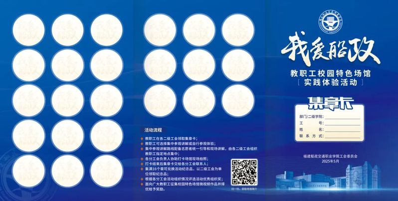 活動以“創(chuàng)新船政、質(zhì)量船政、文化船政、開放船政”理念為牽總,學(xué)院校史館、三全育人館、嚴(yán)復(fù)史績館、黨建思政船政文化研學(xué)中心“三館一中心”為組團,青年服務(wù)中心、“一站式”學(xué)生服務(wù)中心、職工之家“兩區(qū)三陣地”為輻射,航海技術(shù)、安全技術(shù)與管理兩大“雙高”專業(yè)群為龍頭,交通土建、汽車運用、通用航空、軌道交通、交通運輸服務(wù)、機械與智能制造、信息技術(shù)與智慧交通為支撐的9大現(xiàn)代綜合立體交通專業(yè)集群16個特色實驗實訓(xùn)基地為延伸,采用集章打卡互動形式,通過沉浸式、體驗式參觀方式,教學(xué)相長、組團互學(xué)研學(xué)實踐,充分活化學(xué)院“愛國強技、產(chǎn)學(xué)一體、精益求精、趨變求新”職教資源和辦學(xué)特色,充分激發(fā)學(xué)院教職工的自豪感、幸福感和獲得感,團結(jié)引領(lǐng)廣大教職員工與學(xué)院發(fā)展同頻共振,與偉大時代進步同向同行。