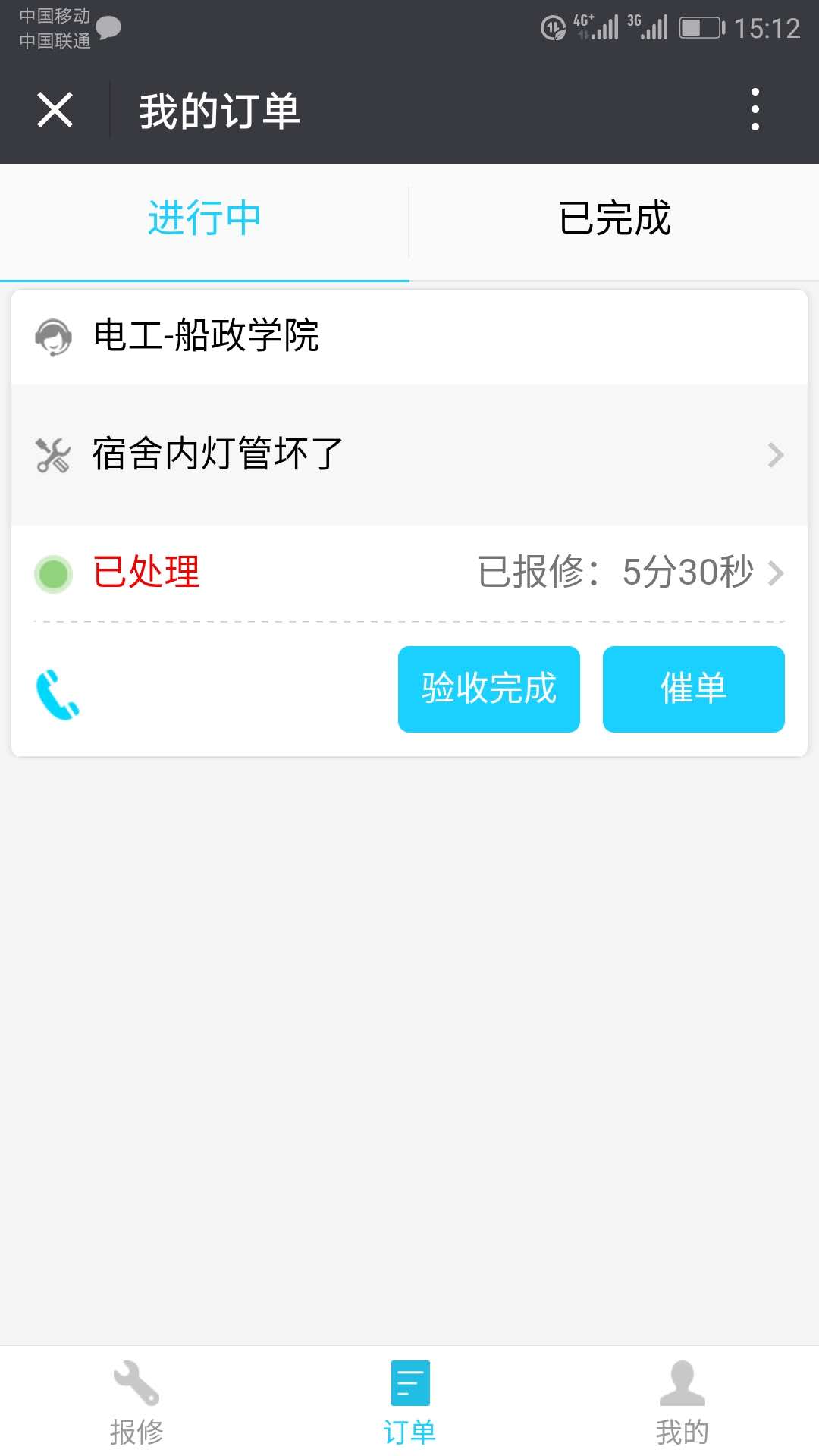 4、 師傅上門維修完成后點擊驗收完成后確認已完成。