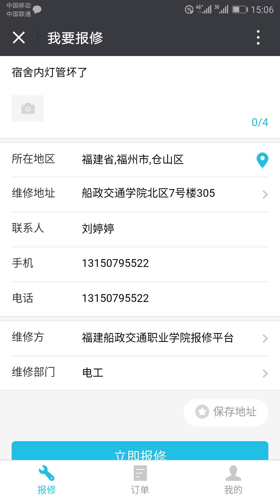 2、進入報修頁面,填寫報修內容后點擊立即報修。(如圖)