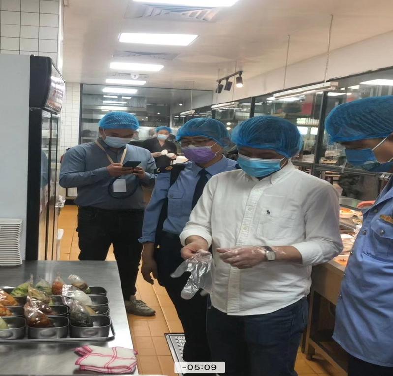 檢查組一行重點檢查了食堂疫情防控管理相關情況、食品進貨臺賬、員工健康管理、餐品留樣及場所設備設施清潔維護等,現(xiàn)場提出了專業(yè)的指導意見。