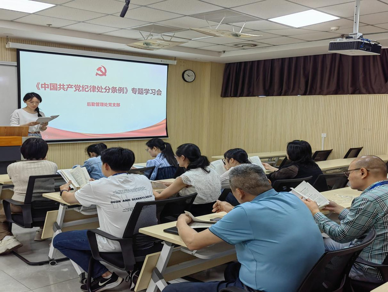 2024年5月22日,進(jìn)一步加強(qiáng)黨的紀(jì)律建設(shè),提高全體黨員干部遵規(guī)守紀(jì)意識(shí),后勤管理處黨支部組織開(kāi)展學(xué)習(xí)會(huì)議,專題學(xué)習(xí)新修訂的《中國(guó)共產(chǎn)黨紀(jì)律處分條例》。后勤管理處黨支部書(shū)記??蔀橹鞒謺?huì)議,支部黨員積極參會(huì)。