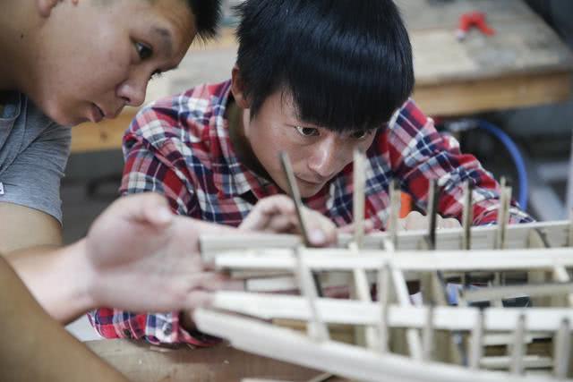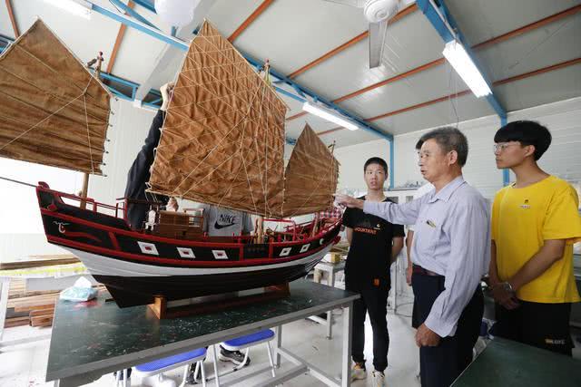 昨日,在該校,78歲的林瑞好師傅、35歲的江金春老師與學生一起,正在埋頭制作2008年橫跨太平洋的福船——“太平公主號”的復原模型。