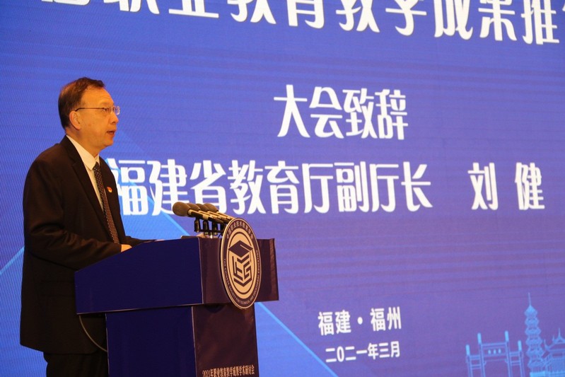 福建省委教育工委委員、教育廳黨組成員、副廳長(正廳長級)劉健在會上致辭。他代表福建省委教育工委、教育廳向大會的召開表示祝賀,對長期以來關(guān)心支持福建教育的各界人士表示誠摯的感謝。他向與會代表介紹了福建省情和職業(yè)教育事業(yè)發(fā)展情況,他說,習(xí)近平總書記擔任福州市委書記期間,曾兼任閩江職業(yè)大學(xué)校長,提出的“不求最大,但求最優(yōu),但求適應(yīng)社會發(fā)展需要”的辦學(xué)理念,時至今日仍是辦好職業(yè)院校、增強職業(yè)教育適用性的重要法寶。習(xí)近平總書記強調(diào)“福建沒有理由不把教育辦好”,多次對福建教育改革發(fā)展作出重要批示指示,福建省委、省政府始終把職業(yè)教育擺在優(yōu)先發(fā)展位置。福建是習(xí)近平職業(yè)教育重要論述的孕育地和重要實踐地,總書記為福建職業(yè)教育擘畫的藍圖,歷經(jīng)幾代職業(yè)教育人的辛勤耕耘,經(jīng)歷了萌芽、開花、結(jié)果的幸福歷程。特別是進入新時代以來,為適應(yīng)地方經(jīng)濟社會發(fā)展,福建全力加推職業(yè)教育快速持續(xù)發(fā)展,綜合實力不斷提升。全省職業(yè)院校聚焦新發(fā)展階段、貫徹新發(fā)展理念、主動融入并積極服務(wù)新發(fā)展格局,涌現(xiàn)了一大批教育教學(xué)成果。他希望福建各高職高專院校學(xué)習(xí)借鑒兄弟省區(qū)市的經(jīng)驗做法,將會議的主要精神、創(chuàng)新經(jīng)驗和做法運用到教育教學(xué)改革的具體實踐中去,在改革實踐中不斷提升辦學(xué)水平和人才培養(yǎng)質(zhì)量,努力開創(chuàng)我省職業(yè)教育改革發(fā)展新局面,為全方位推動高質(zhì)量發(fā)展超越和新時代新福建建設(shè)做出積極的貢獻。