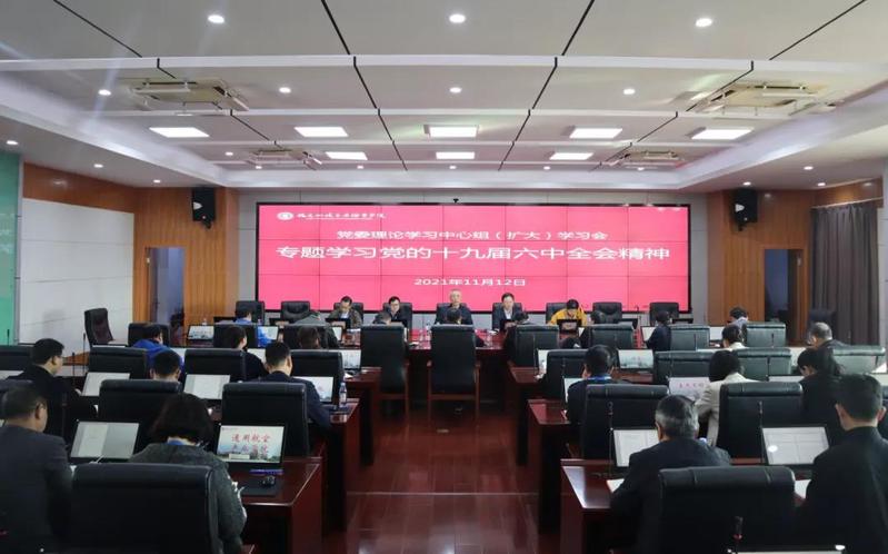 11月12日下午,學院第一時間召開黨委理論學習中心組(擴大)學習會,專題學習黨的十九屆六中全會精神。黨委理論學習中心組全體成員、各部門負責人、各二級學院黨政負責人參加了學習會。