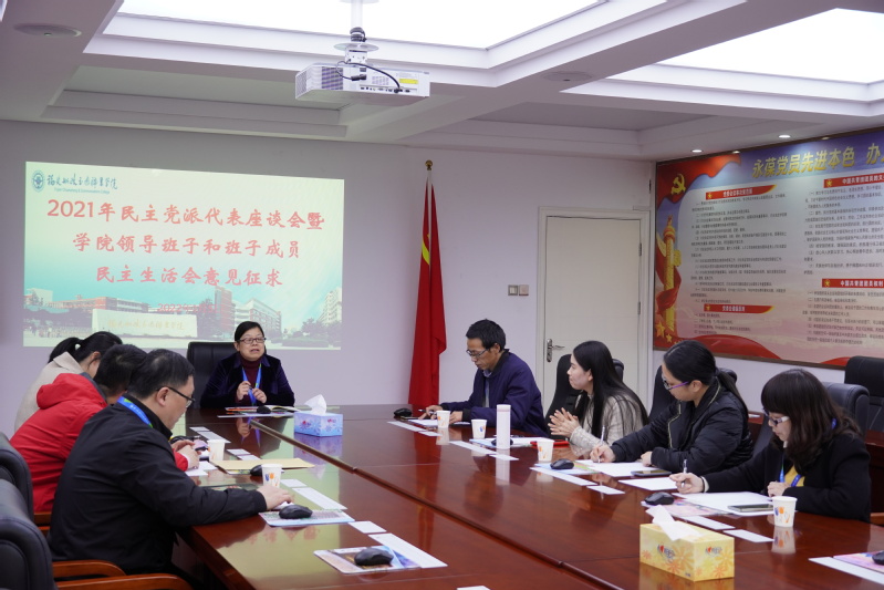 2022年1月5日下午,學(xué)院在北校區(qū)行政樓第三會(huì)議室召開(kāi)2021年民主黨派代表座談會(huì)暨學(xué)院領(lǐng)導(dǎo)班子和班子成員民主生活會(huì)意見(jiàn)征求會(huì),學(xué)院各民主黨派代表、宣傳統(tǒng)戰(zhàn)部全體人員參加了座談會(huì)。