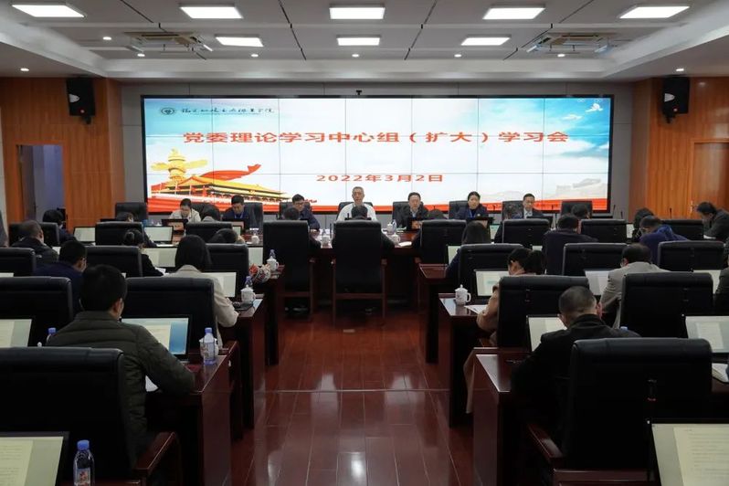 2022年3月2日上午,學院召開黨委理論學習中心組(學習擴大)學習會議。會議傳達學習了習近平總書記在中央黨校中青年干部培訓班開班式上的講話精神、中央政治局委員 書記處書記 全國人大常委會 國務院 全國政協(xié)黨組成員 最高人民法院 最高人民檢察院黨組書記向黨中央和習近平總書記述職會議精神、教育部2022年工作要點、教育部2022年教育新春發(fā)布會關于推動現(xiàn)代職業(yè)教育高質(zhì)量發(fā)展的會議精神以及2022年全省教育工作會議精神、省委常委會會議和省委《關于實施“提高效率、提升效能、提增效益”行動方案》精神等。會議由黨委書記張海明主持。