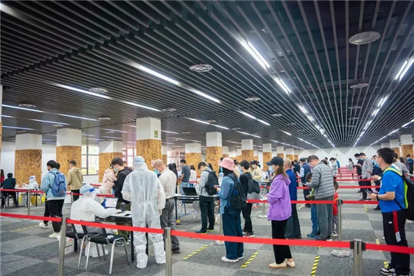 根據(jù)屬地要求,從3月13日晚開始至3月14日凌晨華僑大學(xué)連夜完成對泉州校區(qū)全體在校師生員工及校區(qū)范圍內(nèi)的其他人員的核酸檢測。為保證檢測過程的安全和秩序,各部門迅速行動(dòng),全體師生積極配合,參檢人員自覺間隔一米排隊(duì),提前準(zhǔn)備好身份證登記信息,并在檢測完成后迅速離場。