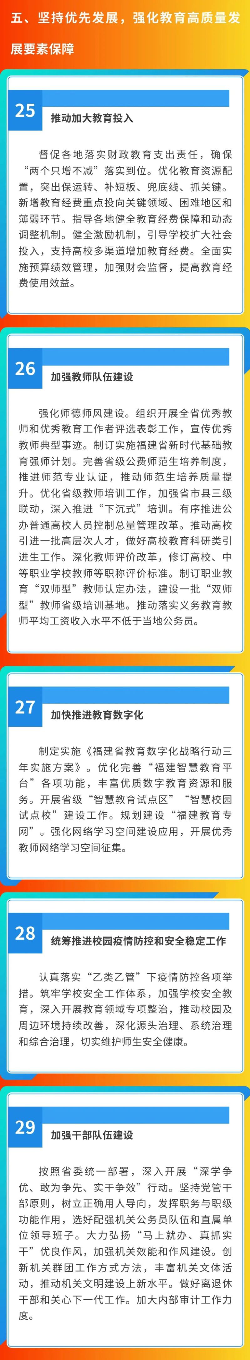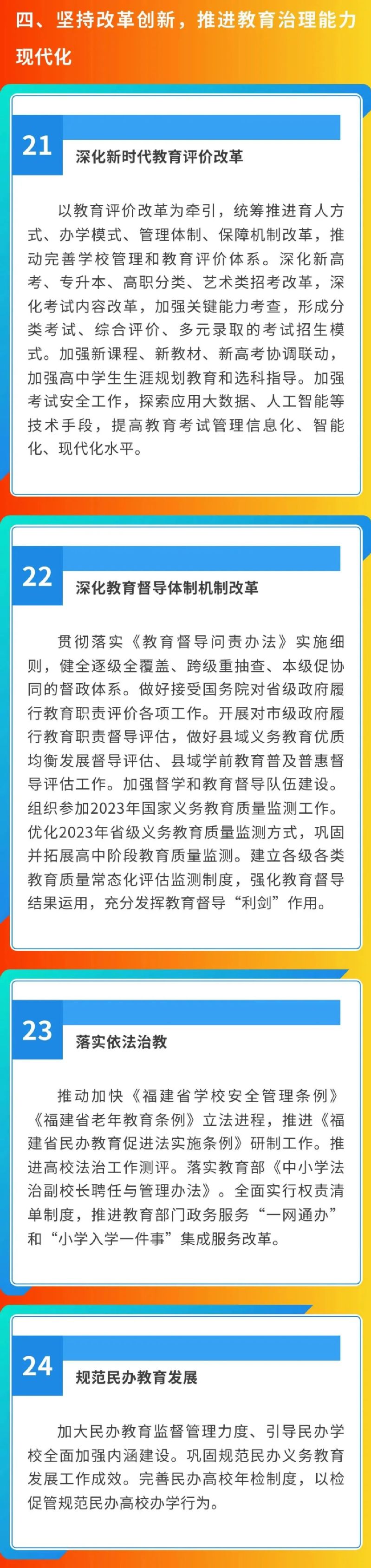 日前,福建省教育廳2023年工作要點(diǎn)印發(fā),提出5個(gè)方面29項(xiàng)工作要點(diǎn)。主要內(nèi)容如下: