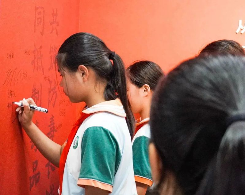揭牌儀式后,大家在禁毒宣誓墻前莊嚴(yán)宣誓,并向師大附小及我院學(xué)生代表捐贈(zèng)禁毒書籍。