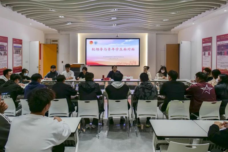 12.6日下午,學(xué)院團委在福道園鑒知樓黨建思政館舉行學(xué)院領(lǐng)導(dǎo)與青年學(xué)生面對面座談交流會。學(xué)院黨委委員、紀委書記張輝,學(xué)院團委班子成員、學(xué)生會全體工作人員、二級學(xué)院學(xué)生會主席團成員等近60人參加會議,會議由學(xué)院團委書記陳慧主持。