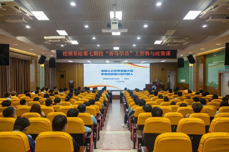 12月14日晚,我院黨委書(shū)記陳宜大在福道園行政樓學(xué)術(shù)報(bào)告廳為我院第七期“青馬學(xué)員”講授《準(zhǔn)確認(rèn)識(shí)世界發(fā)展大勢(shì),爭(zhēng)做民族復(fù)興時(shí)代新人》的專題形勢(shì)與政策課。組織部、宣傳統(tǒng)戰(zhàn)部、學(xué)生工作部、團(tuán)委、馬克思主義學(xué)院等我院團(tuán)員和青年主題教育副組長(zhǎng)單位負(fù)責(zé)人、各二級(jí)學(xué)院分團(tuán)委負(fù)責(zé)人、馬克思主義學(xué)院教師、青馬班學(xué)員參加講座。講座由院團(tuán)委書(shū)記陳慧主持。