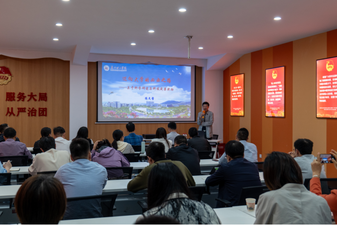 陳文哲教授首先做題為“邁向大學(xué)的必由之路——關(guān)于科學(xué)研究與科技成果獎勵”的報告,從青年教師成長、產(chǎn)學(xué)研合作、科技成果積累與報獎、科研與教學(xué)之間的關(guān)系等方面做了精彩分享,并勉勵青年教師勇于投身產(chǎn)學(xué)研實踐,組建校企科技攻關(guān)團(tuán)隊,在科研實踐中不斷成長。