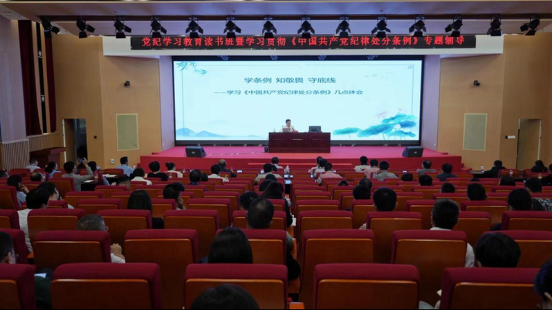 6月5日下午,學院舉辦黨紀學習教育讀書班暨學習貫徹新修訂的《中國共產黨紀律處分條例》專題輔導報告會。省紀委監(jiān)委駐省教育廳紀檢監(jiān)察組負責同志應邀作《學條例 知敬畏 守底線》專題輔導報告,學院黨委書記陳宜大主持會議。黨委副書記、院長陳錦輝,黨委委員、紀委書記張輝和全體副科級及以上干部150余人參加。